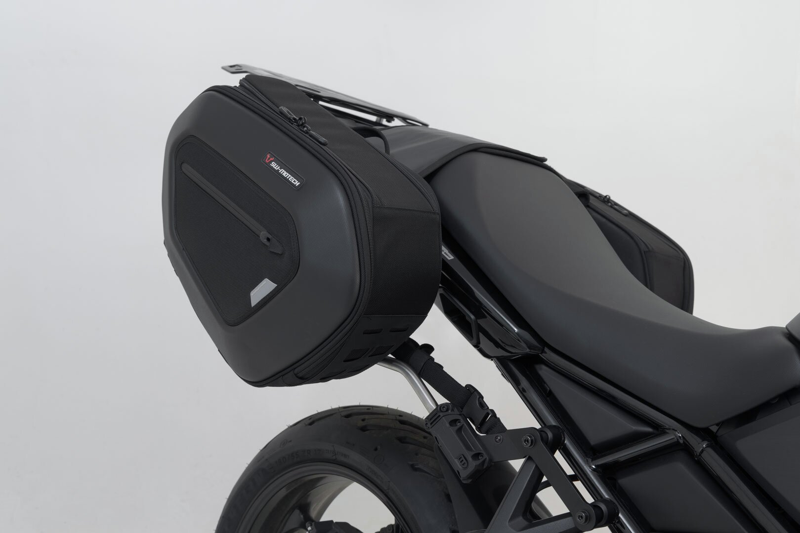 Die modellspezifisch entwickelten Abstandsbügel, eine leistungsstarke Klettlasche und ein zusätzlicher Sicherungsgurt mit Klickverschluss sichern besten Halt und verhindern ein Einschwingen oder Flattern der Taschen – auch bei hohen Geschwindigkeiten.