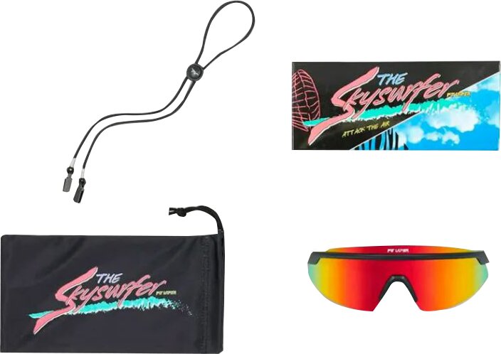 Sag der Sonne, sie soll verschwinden! Egal, woher der Wind weht, mit dem Skysurfer sind Sie bestens gerüstet. Diese aerodynamischen Pit Vipers verfügen über gummierte Berührungspunkte, die sie in jeder Höhe fest im Griff haben, während die kratzfeste Linse unter allen Bedingungen eine extreme Sicht gewährleistet.