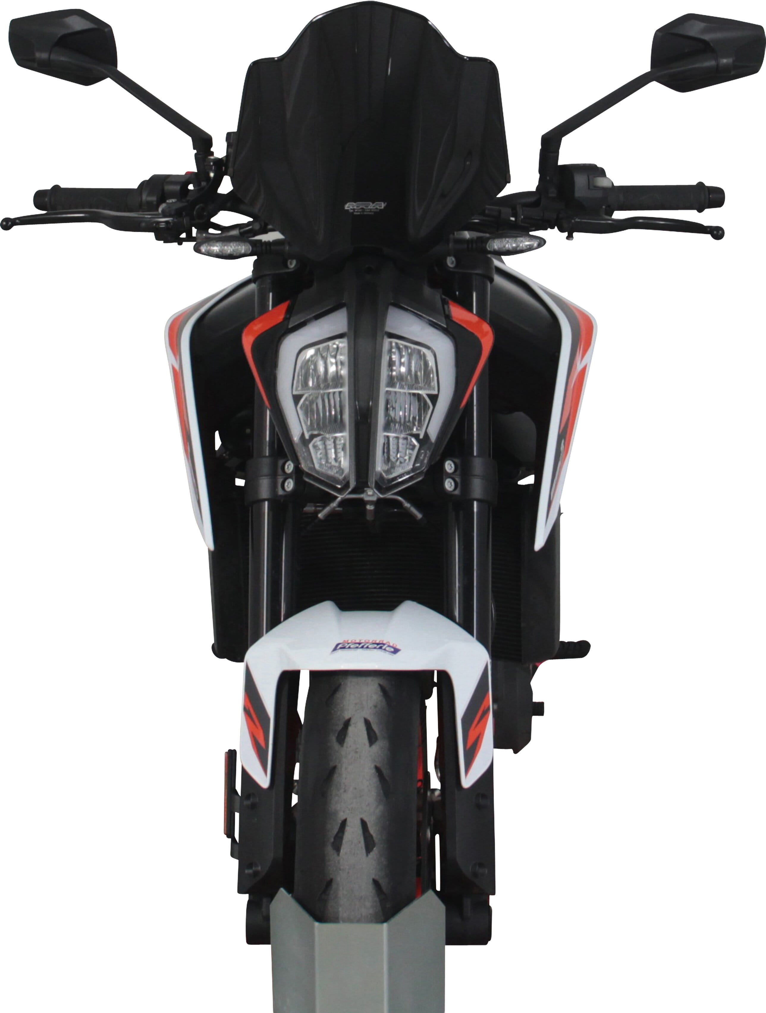 Sportliche Scheibe im "Race-Look" mit gutem Windschutz, die optimal zum Design und der Linienführung des Motorrades passt.