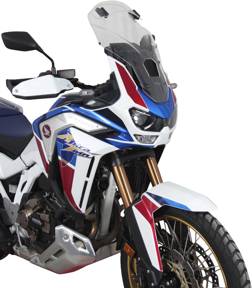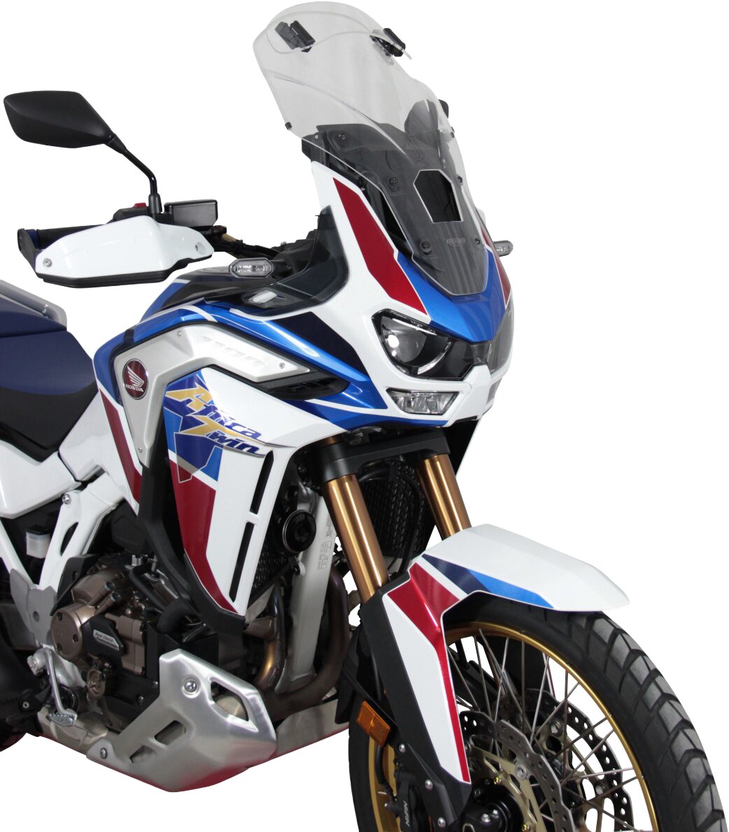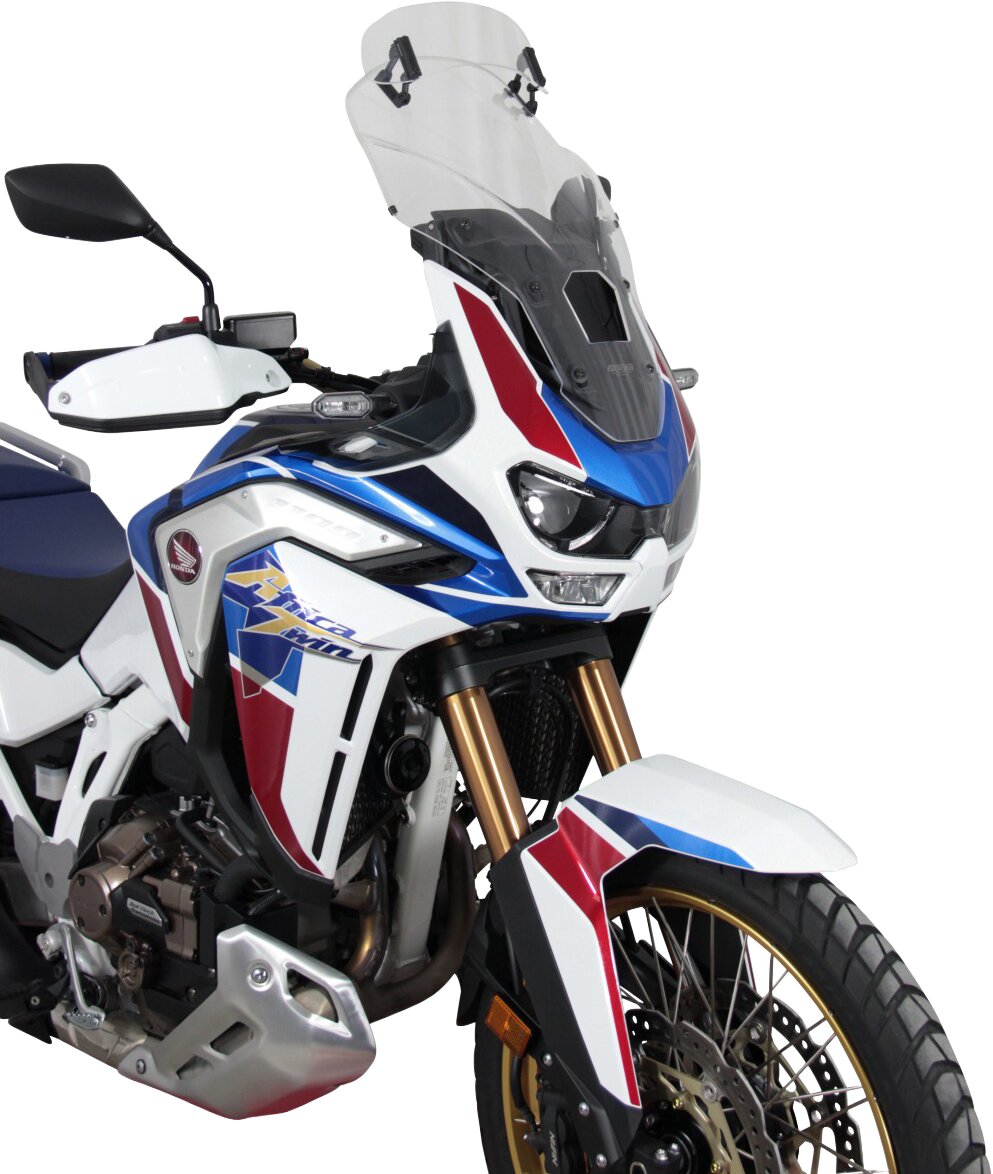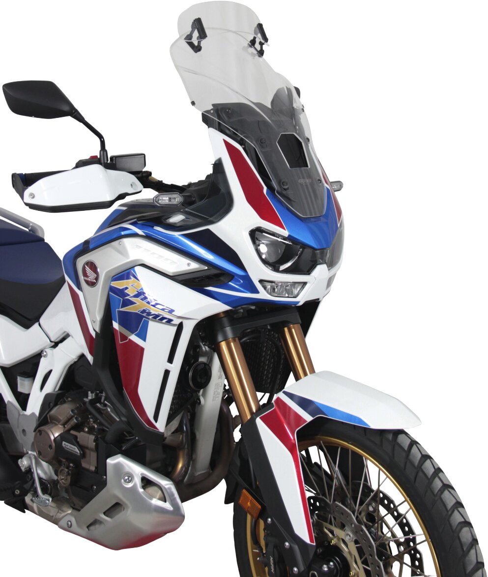 Diese Tourenscheibe hat am Ende einen Spoiler, der sich manuell in sieben Stufen auf die gewünschte Position verstellen lässt. Durch die Hinterströmumg des Spoilers wird der Winddruck vom Fahrer genommen und gleichzeitig die Turbulenzen reduziert. Die Vario- Touringscreen ist in klar und rauchgrau erhältlich.