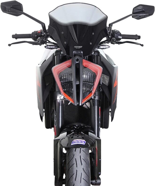 Sportliche Scheibe im "Race-Look" mit gutem Windschutz, die optimal zum Design und der Linienführung des Motorrades passt.