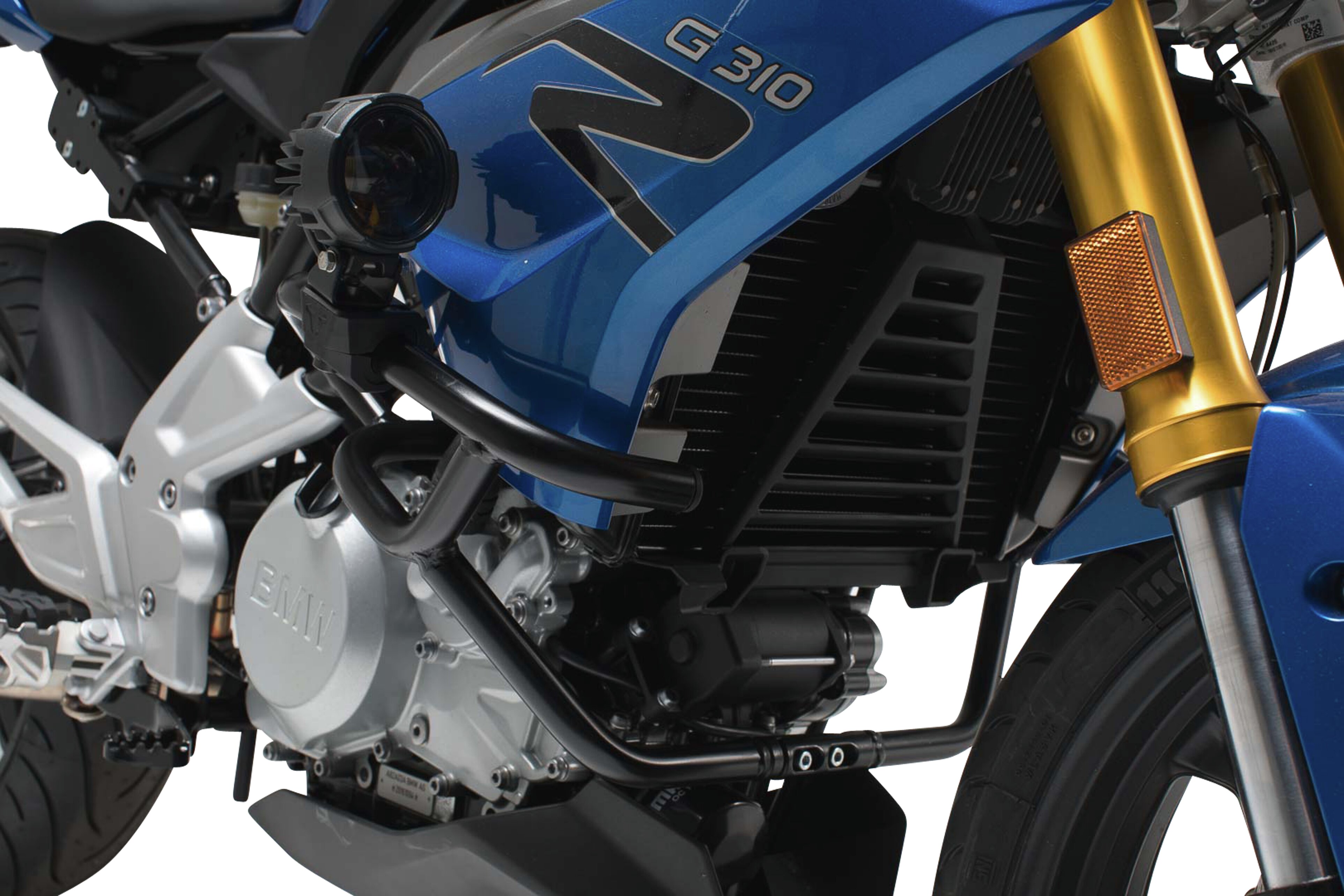 • Optionales Zubehör: Verkleidungsschutzbügel (ausschliesslich BMW R 1200 GS), Nebelscheinwerferklemmen-Set, HAWK Scheinwerferklemmen-Set.