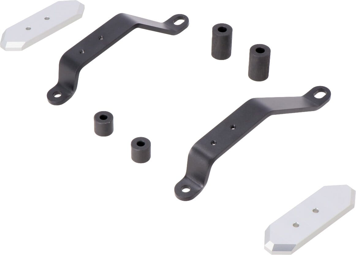 Zusätzlichen Schutz im Falle eines Sturzes geben Rahmen-Sturzpads. Form, Oberfläche und Material sorgen für hervorragende Gleiteigenschaften und verringern Schäden am Motorrad. Die robuste Alu-Unterkonstruktion lässt sich leicht montieren und bei Bedarf lassen sich die CNC-gefrästen Schleifpads aus abriebfestem Polyamid schnell austauschen.