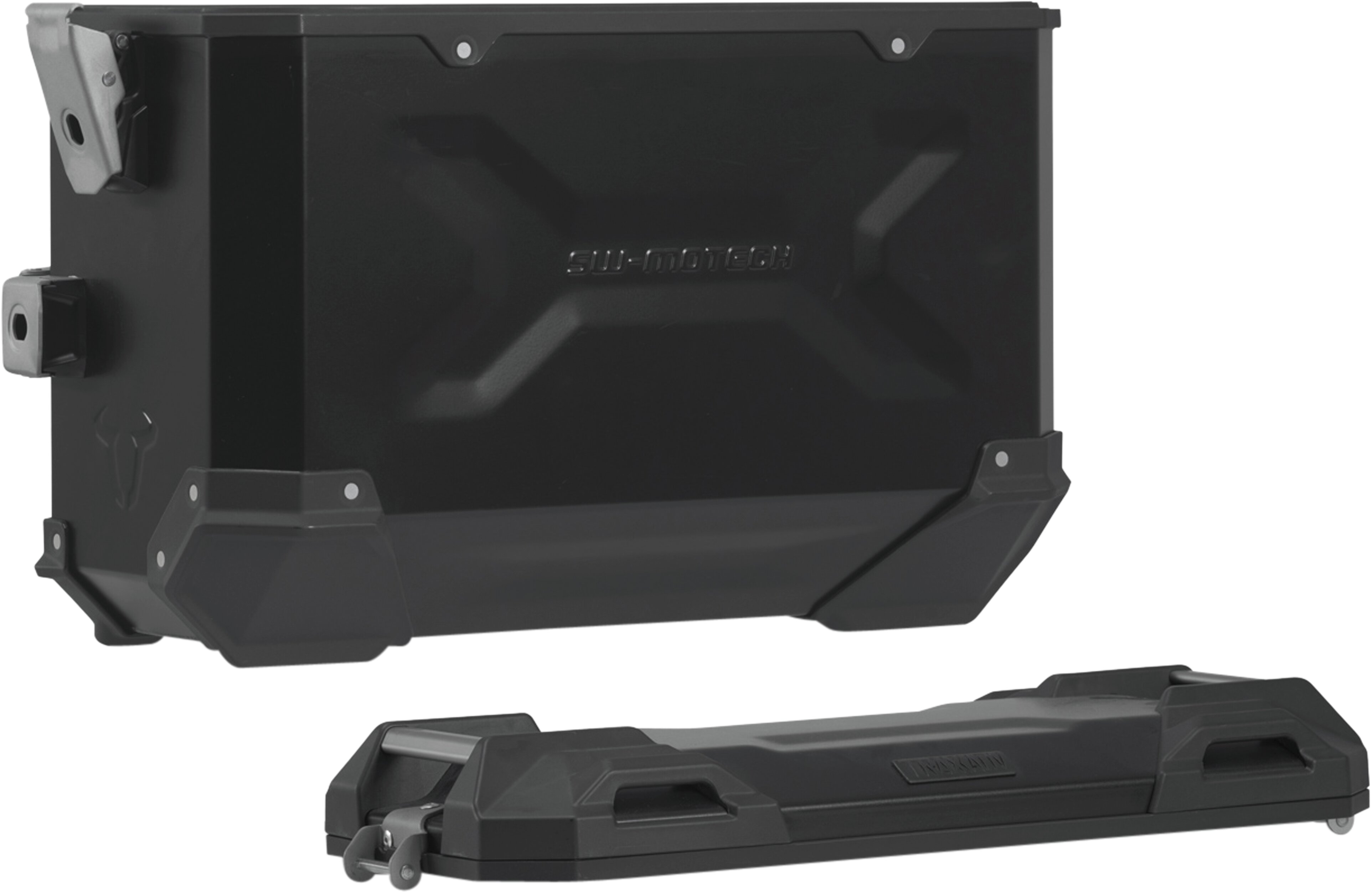 Die robusten TRAX ADV Alukoffer fühlen sich auf jeder Strecke zuhause: Designprägungen unterstützen die Stabilität des 1,5 Millimeter starken, geschweissten Aluminium-Wandmaterials. Ein komplett abnehmbarer Deckel mit Tragegriffen aus eloxiertem Aluminium und Schnellverschlüssen erleichtert Be- und Entladen der Motorradkoffer, die abgeschrägte Seitenkante gibt hohe Bodenfreiheit bei der Kurvenfahrt. Mit dieser Komplettlösung hast du alle benötigten Komponenten, um direkt mit TRAX auf grosse Reise zu gehen: Zwei wasserdichte TRAX ADV Seitenkoffer, zwei abnehmbare SW-MOTECH Seitenträger, Adapterkit, Schloss-Satz, Öffnungsbegrenzer und Diebstahlsicherung zum attraktiven Gesamtpreis. Die modellspezifischen Träger und die Grösse der Koffer sind perfekt auf Heckgeometrie und Auspuffanlage des Motorrades abgestimmt.