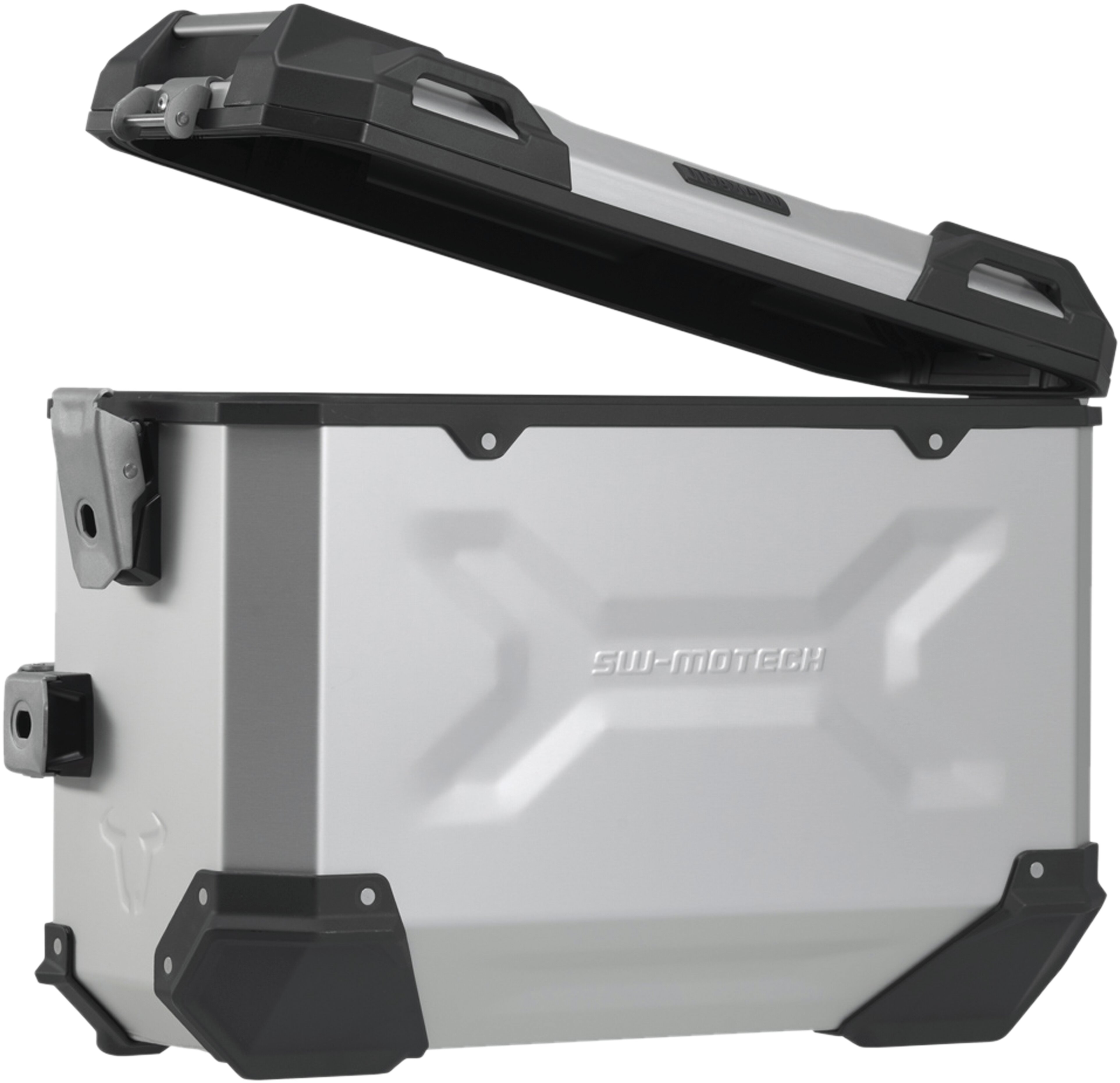 Die robusten TRAX ADV Alukoffer fühlen sich auf jeder Strecke zuhause: Designprägungen unterstützen die Stabilität des 1,5 Millimeter starken, geschweissten Aluminium-Wandmaterials. Ein komplett abnehmbarer Deckel mit Tragegriffen aus eloxiertem Aluminium und Schnellverschlüssen erleichtert Be- und Entladen der Motorradkoffer, die abgeschrägte Seitenkante gibt hohe Bodenfreiheit bei der Kurvenfahrt. Mit dieser Komplettlösung hast du alle benötigten Komponenten, um direkt mit TRAX auf grosse Reise zu gehen: Zwei wasserdichte TRAX ADV Seitenkoffer, zwei abnehmbare SW-MOTECH Seitenträger, Adapterkit, Schloss-Satz, Öffnungsbegrenzer und Diebstahlsicherung zum attraktiven Gesamtpreis. Die modellspezifischen Träger und die Grösse der Koffer sind perfekt auf Heckgeometrie und Auspuffanlage des Motorrades abgestimmt.
