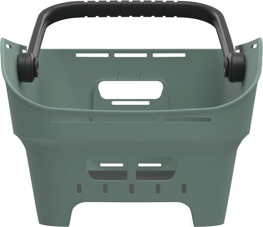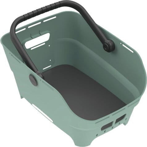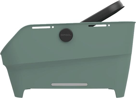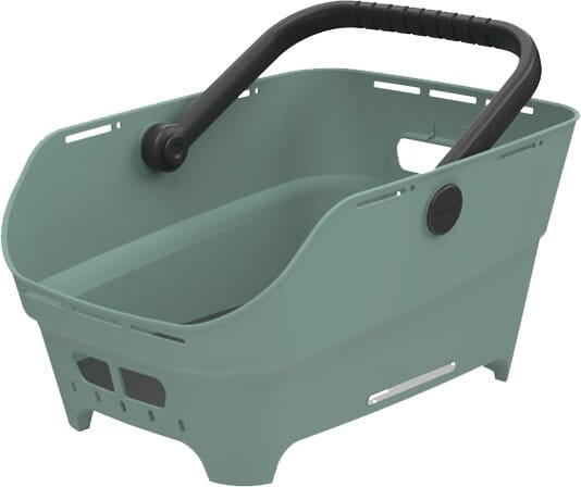 Design und BenutzerfreundlichkeitDer Korb hat eine abgerundete, rechteckige Form und bietet echte Benutzerfreundlichkeit. Die abgeschrägte Kante an der Sattelseite sorgt für mehr Trittspielraum beim Radfahren. Eine integrierte Anti-Rutsch-Matte hält Ihre Sachen auch auf holprigen Strassen sicher an ihrem Platz. Der Griff ist gepolstert, sodass Sie den Korb leise und bequem tragen können, ohne dass etwas klappert. Mit 21 Litern Fassungsvermögen ist genug Platz für einen Rucksack oder eine Laptoptasche. Die Öffnungen im Boden sorgen dafür, dass Regenwasser einfach abläuft.