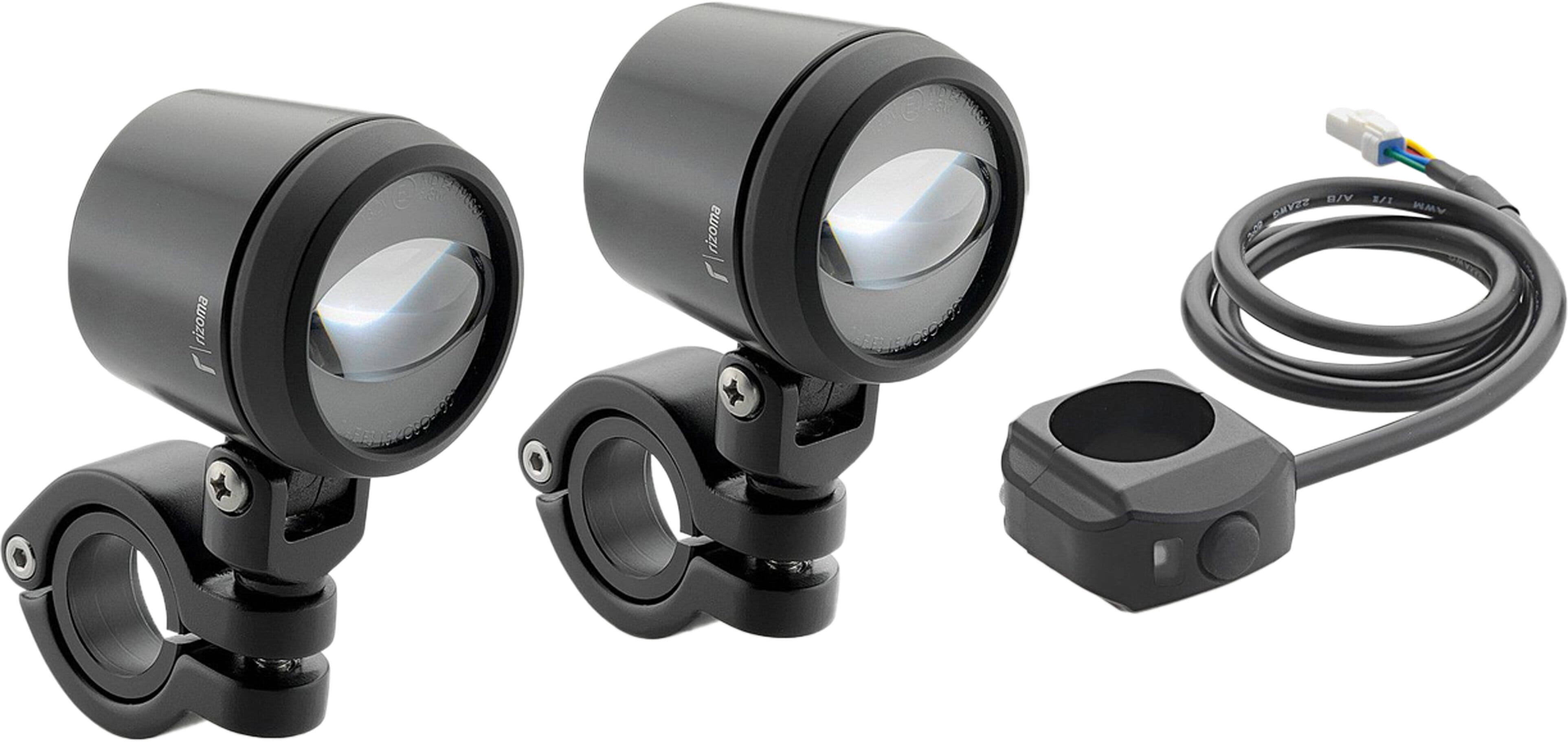 Optionale LED Nebel-Zusatzscheinwerfer. Das Kit enthält Klemmen ø 25.4 - 30mm zur Montage.