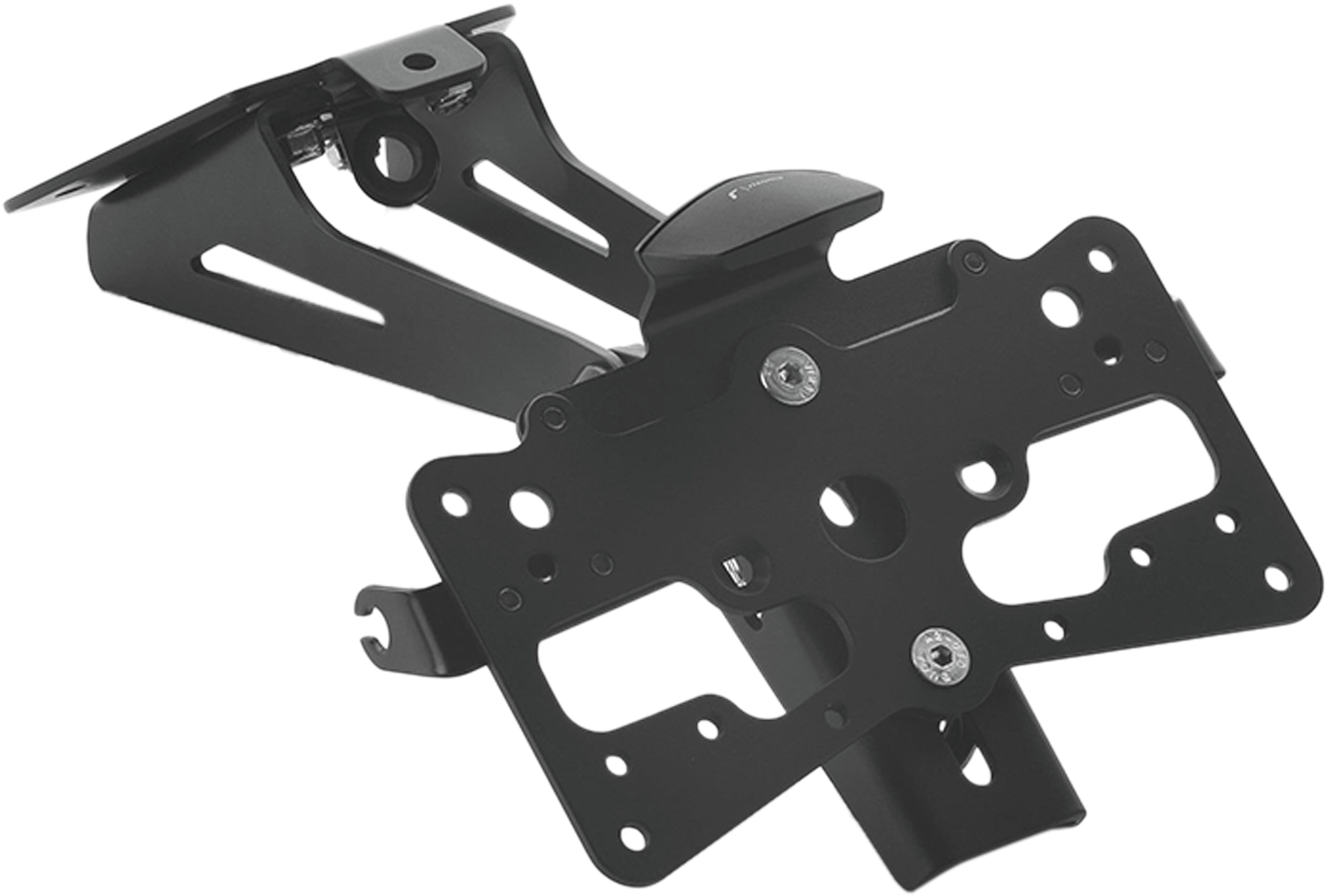 Der aus Aluminium gefertigte Kennzeichenträger Fox ist speziell für das jeweilige Motorradmodell konzipiert. Dadurch passt er sich nicht nur perfekt an die Liniengebung des Motorrads an, sondern punktet zudem durch eine einfache und schnelle Montage. Jedes Kit enthält alle benötigten Montageteile, wobei keine Veränderungen an OEM-Teilen vorgenommen werden müssen. Maximale Funktionalität auf kleinstem Raum und Einhaltung der Zulassungsstandards. Die Fox-Kits enthalten eine SMD-LED-Kennzeichenbeleuchtung, einen Reflektor und Adapter für Rizoma-Blinker, sind verstellbar und mit einem Feststeller zur Fixierung der korrekten Neigung ausgestattet.