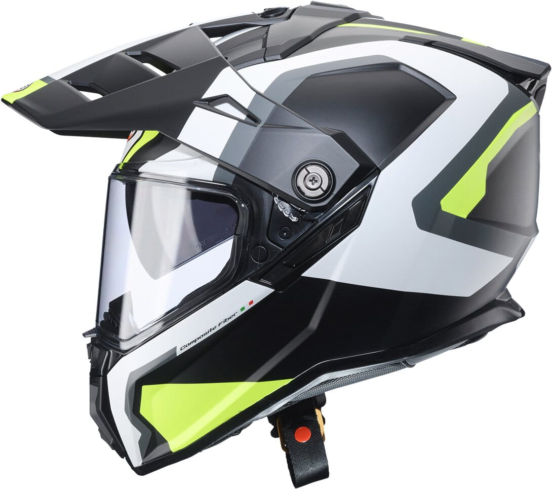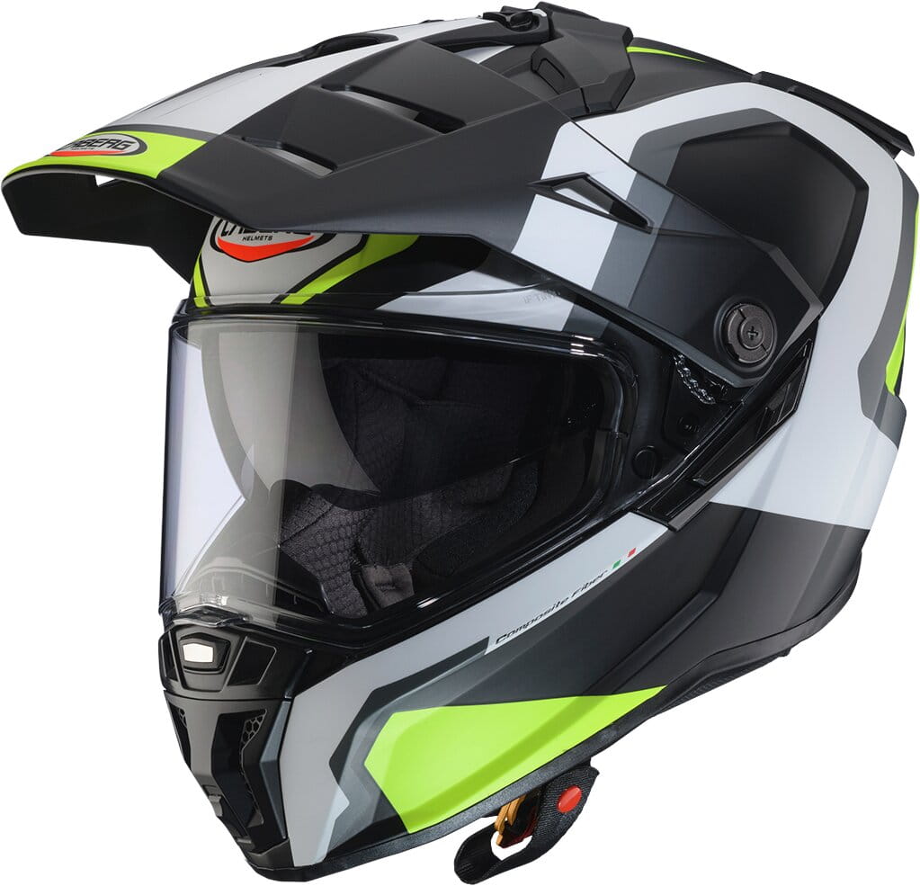 TANAMI – Abenteuer auf und abseits der Strasse mit höchster SicherheitDer Caberg TANAMI ist ein On- und Offroad-Helm mit optimierter Belüftung und dem CABERG SOS MEDICAL ID System. Er wird in zwei Schalengrössen aus Fiberglas und auch als Carbon-Version (TANAMI CARBON) hergestellt. Der Helm kann sowohl mit als auch ohne Visierspitze genutzt werden. Die Belüftung ist dank abnehmbarer Abdeckungen an den hinteren Luftauslässen und am Kinn einfach zu steuern.