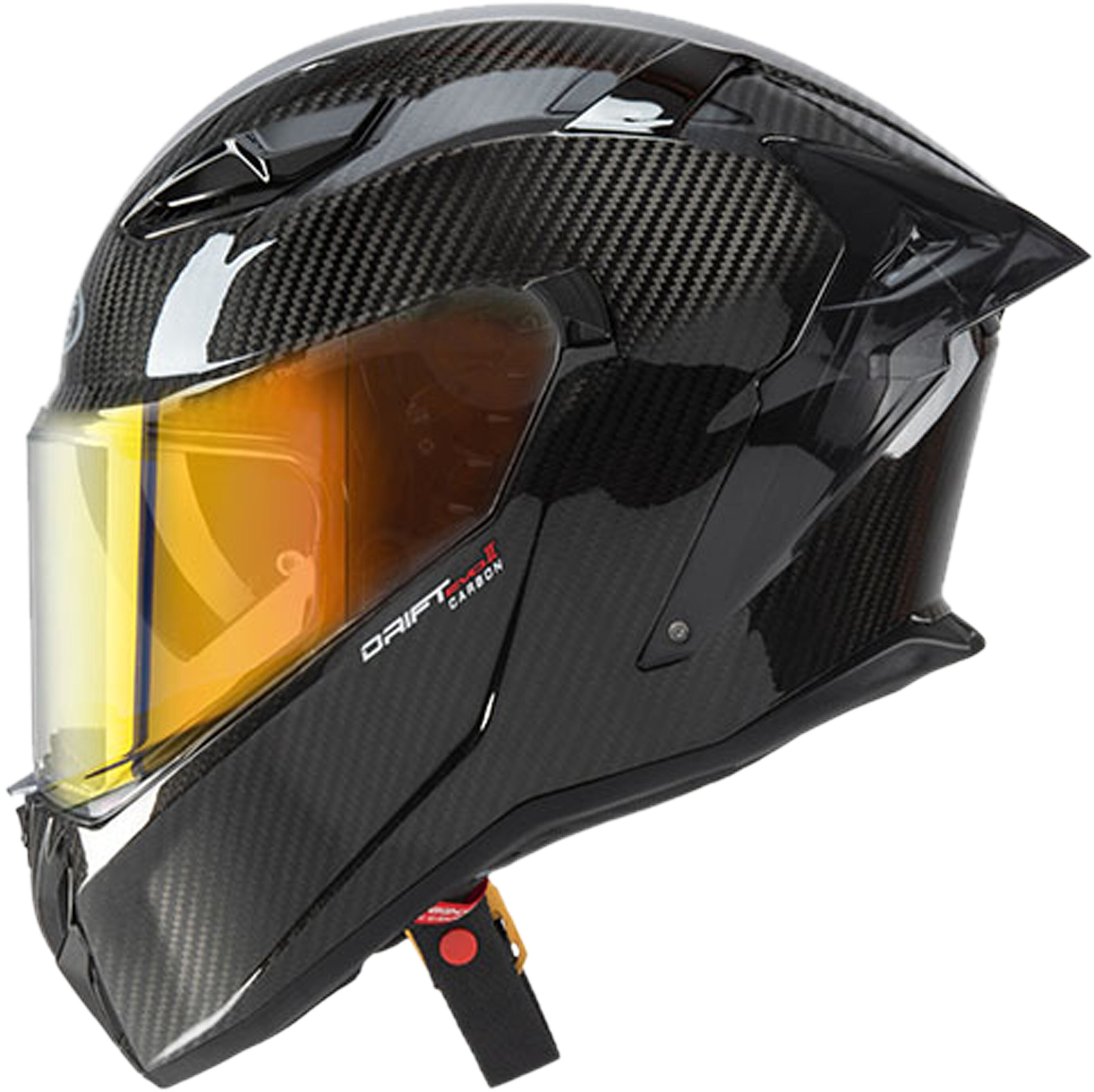 Der DRIFT EVO II verfügt über ein transparentes, kratzfestes Visier und eine im Lieferumfang enthaltene, verstellbare Pinlock Max Vision 70 Antibeschlag-Linse. Der Helm ist mit einem einfach zu bedienenden Schnellverschluss-Visiermechanismus ausgestattet, der eine automatische Anpassung des Visiers ermöglicht und einen engen Kontakt zwischen Visier und Dichtung garantiert. Um ein plötzliches Öffnen des Visiers während der Fahrt zu verhindern, verfügt der DRIFT EVO II über ein zentrales Visierverriegelungssystem und eine Öffnungstaste, die es erlaubt, das Visier in einer minimalen geöffneten Position zu stoppen, um Beschlagen zu vermeiden.