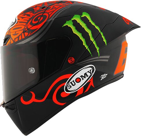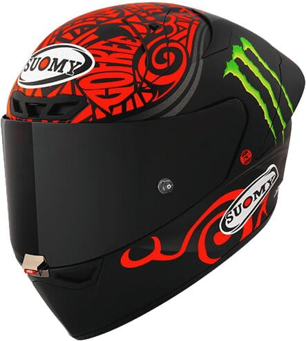 Der brandneue Suomy S1-XR GP wurde in Italien mit modernsten digitalen Entwicklungsmethoden konstruiert und vom Ducati-Corse-Factory-Weltmeister Pecco Bagnaia intensiv getestet. Er erfüllt den höchsten internationalen Sicherheitsstandard der FIM und begeistert durch eine über drei Jahre entwickelte, hochoptimierte Aerodynamik, die in jeder Fahrposition – aufrecht, in Schräglage oder beim Bremsen – ein aussergewöhnlich stabiles und präzises Fahrgefühl ermöglicht. Das deutlich erweiterte Sichtfeld von 92° vertikal und 210° peripher sorgt für ein Plus an Sicherheit und Rundumsicht. Das hochwertige Innenfutter mit antibakterieller Beschichtung bietet optimalen Komfort in jeder Situation. Der Helm kommt in der MotoGP zum Einsatz und richtet sich an Fahrer, die maximale Performance und modernste Technik verlangen.