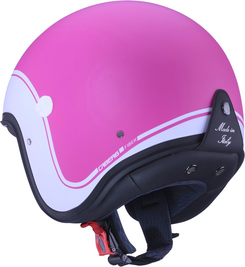 Die sehr kompakte Helmschale – eine der kleinsten auf dem Markt – wiegt nur etwa 800 g und lässt sich selbst in den schmalsten Staufächern unterbringen. Die vollständig italienischen Verarbeitungsdetails (wie die fünf in den Schalenrand eingelassenen Nieten, die siebgedruckte Brillenlasche, die Stahl-Lüftungsöffnungen im Nackenpolster sowie die Einsätze aus Eco-Leder) unterstreichen die Liebe zum Detail.