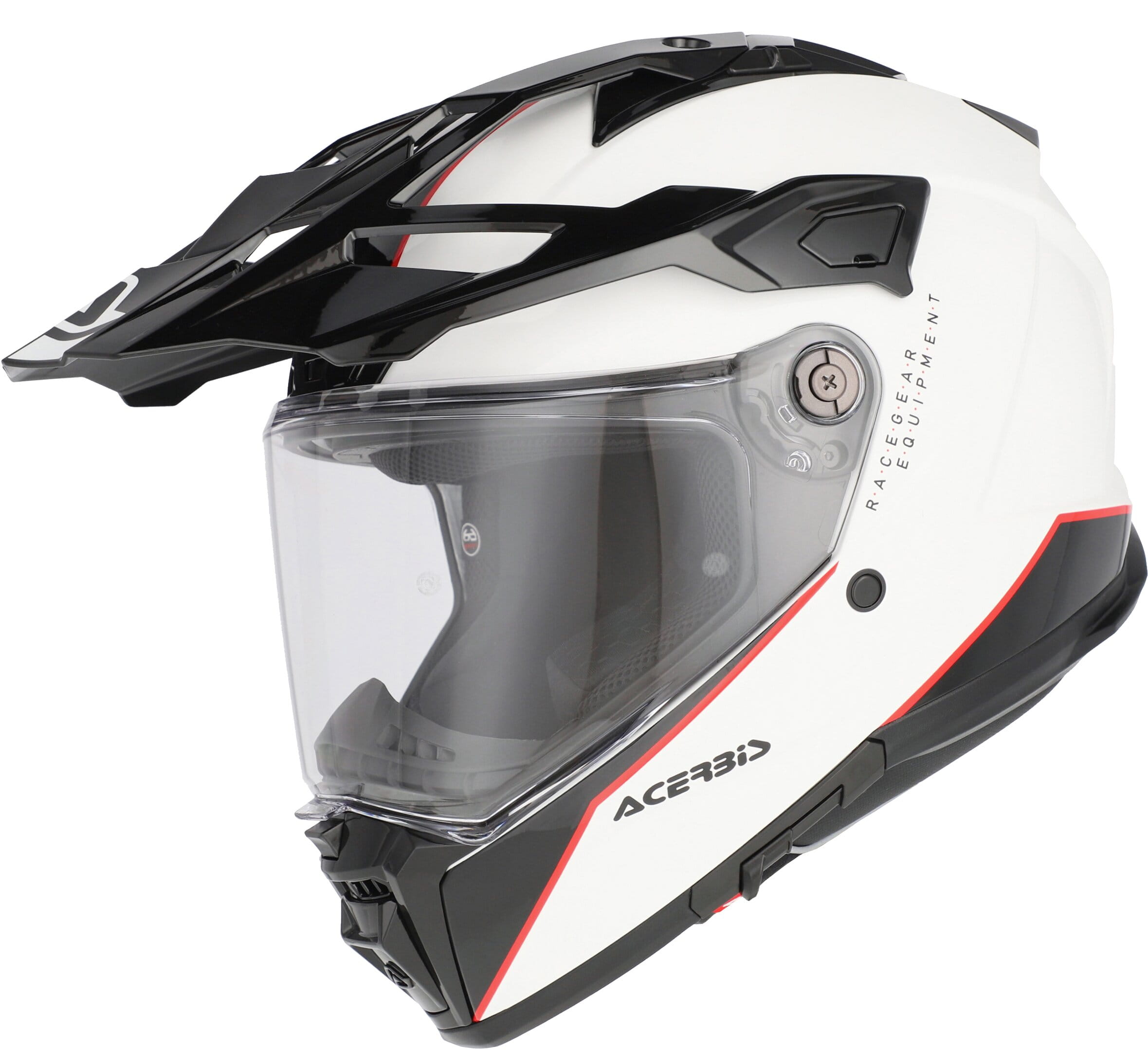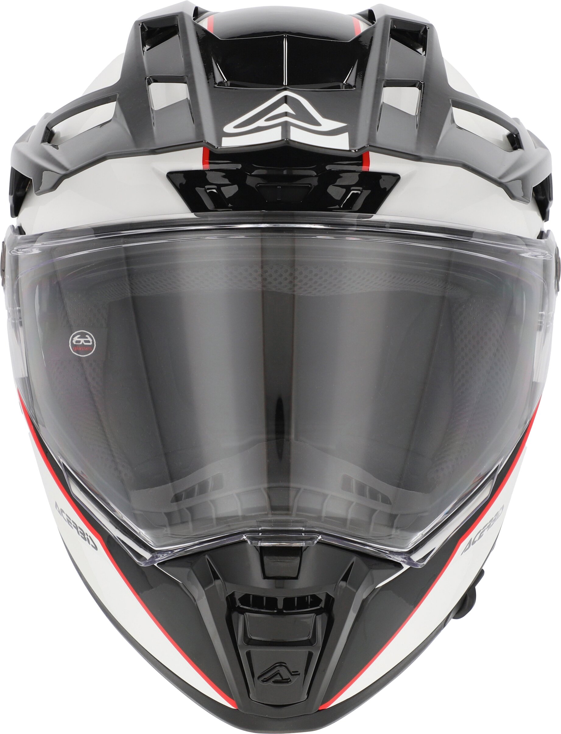 Das Panoramavisier, behandelt mit einer kratzfesten und beschlagfreien Beschichtung, bietet dank der Möglichkeit, PINLOCK einzusetzen, ein weites und klares Sichtfeld, was die Sicherheit auf und abseits der Straße verbessert. Der Helm verfügt außerdem über ein vollständig herausnehmbares und waschbares Innenfutter aus hypoallergenem und atmungsaktivem Stoff, um auch bei den anspruchsvollsten Fahrten dauerhaften Komfort zu gewährleisten. Das Doppelring-Verschlusssystem sorgt für maximale Sicherheit.