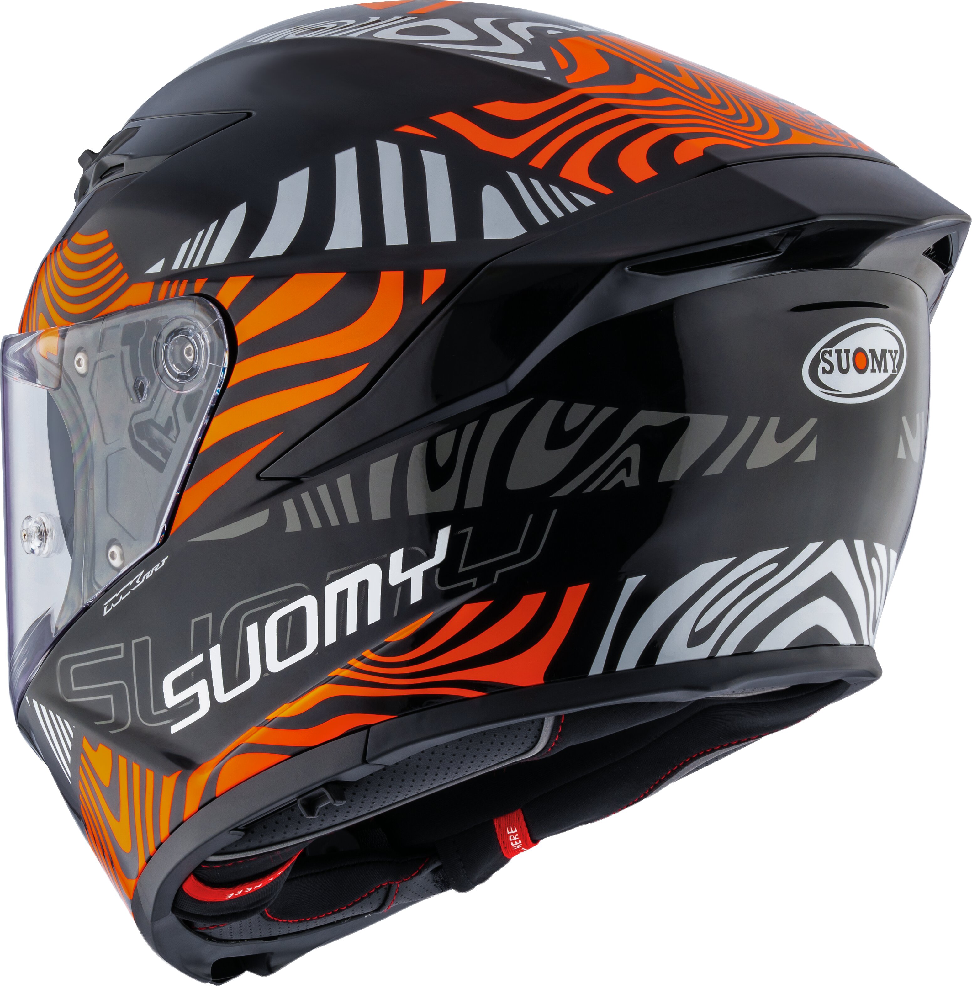 Das kratzfeste, spritzgegossene Polycarbonat-Visier hat eine variable Stärke und lässt sich dank eines werkzeuglosen Mechanismus schnell und einfach entfernen. Das kompakte Visier-System sorgt für zusätzliche Stabilität. Ausserdem ist es mit einem Racing Lock System (Pat. Pend.) ausgestattet, das ein unbeabsichtigtes Öffnen oder Ablösen im Falle eines Sturzes verhindert.