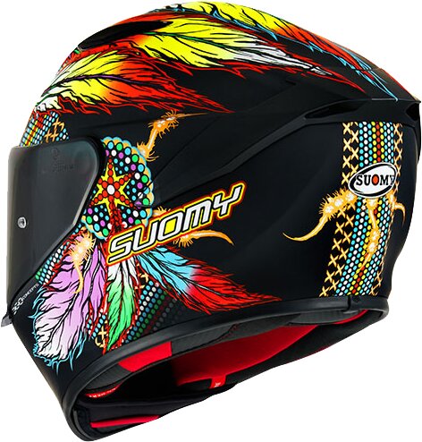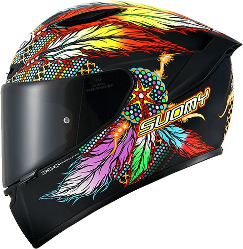 Der TRACK-1 ist der neue Integralhelm der nächsten Generation von Suomy, gefertigt aus dem TRICARBOCO-Verbundmaterial (Kevlar/Carbon/Glasfaser). Charakterisiert durch dynamische, leistungsorientierte Formen, wurde er im Windkanal entwickelt, um die optimale Balance zwischen Strassen- und Rennstrecken-Einsatz zu gewährleisten.