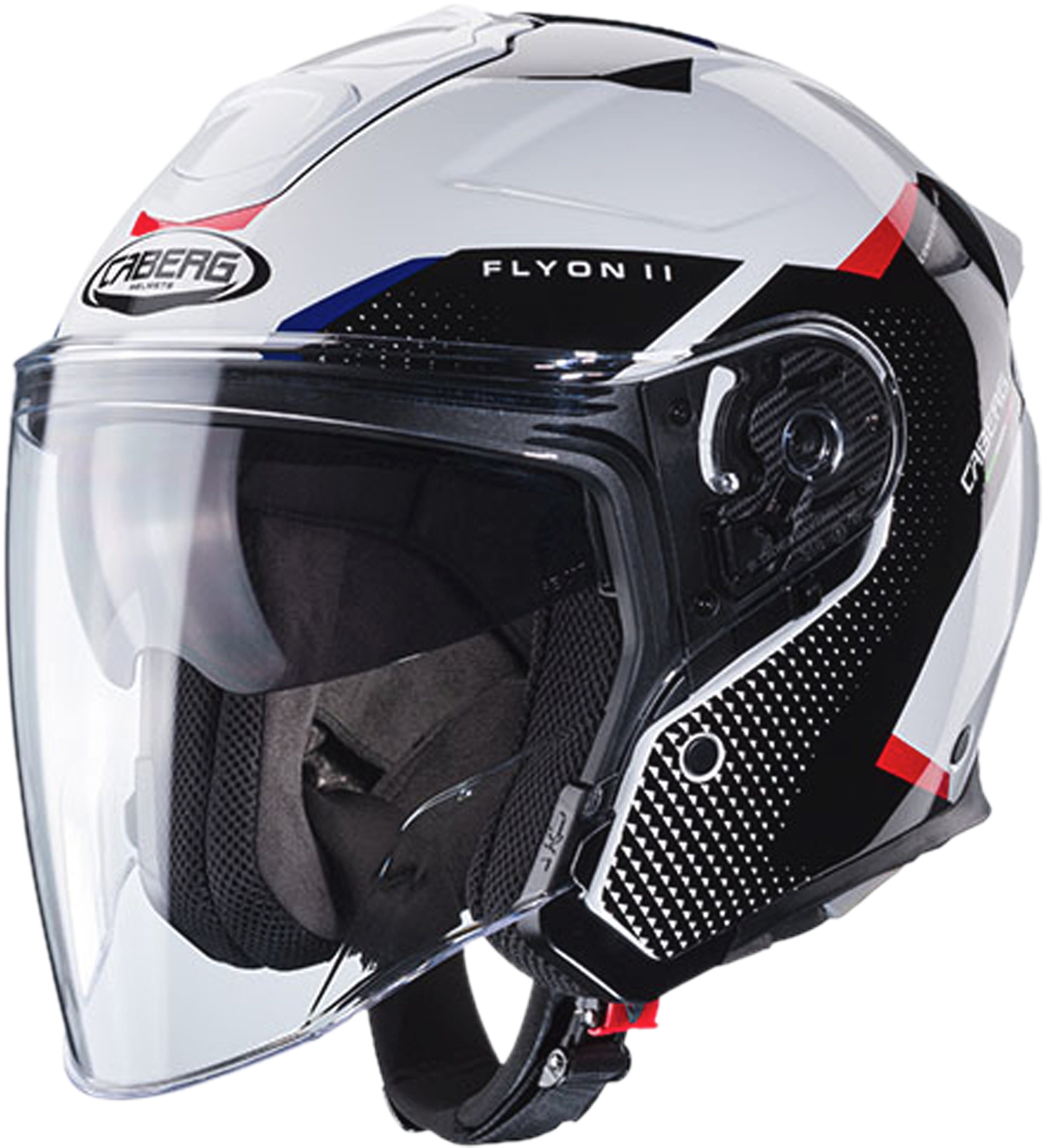 Der FLYON II wird in zwei Schalengrössen gefertigt, um das optimale Verhältnis zwischen Helmgrösse und Fahrergrösse zu gewährleisten. Der Helm ist in Glasfaser- oder Carbon-Ausführung erhältlich. Der FLYON II ist für den Caberg Pro Speak Evo-Kommunikator vorbereitet, der die Kommunikation mit dem Beifahrer ermöglicht und eine Bike-to-Bike-Verbindung bis zu 200 Metern bietet. Ausserdem kann er mit einem GPS verbunden werden und Musik vom Handy oder MP3-Player abspielen. Für maximale Sicherheit hat der FLYON II alle ECE 22.06-Prüfungen auch mit installiertem Pro Speak Evo-System bestanden.