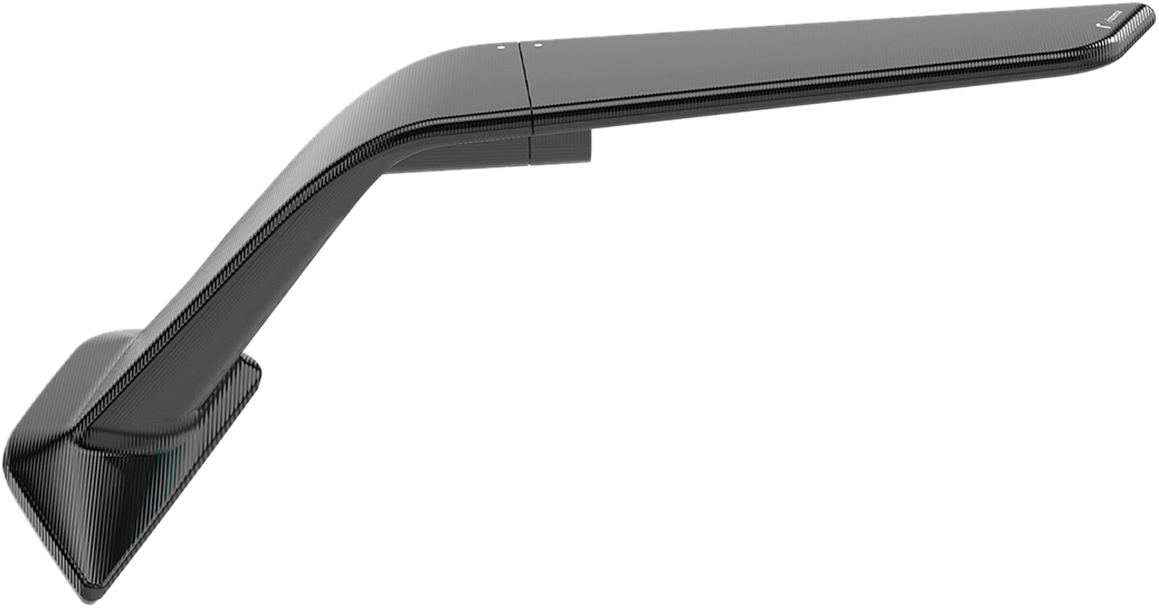 Entwickelt, um zu verschwinden. Geboren, um darüber hinauszugehen. Speziell für Supersport-Motorräder entwickelt, wurde Stealth Sport konzipiert, um die visuelle Wirkung auf ein Minimum zu reduzieren und die Luft zu beherrschen. Zwei Elemente: eine feste Basis, die in die Verkleidung integriert ist, und ein beweglicher Körper, der das Glas schützt. Mit einer einzigen Bewegung verdichtet sich die Struktur und verwandelt den Spiegel in einen aerodynamischen Flügel. Das Ergebnis: spürbarer Abtrieb, bis zu 4 kg bei 300 km/h. Aus einem einzigen Aluminiumblock gefräst und mit tiefgehender Eloxierung veredelt, verfügt es über eine konvexe HD-blaugetönte Linse für eine klare, blendfreie Sicht.