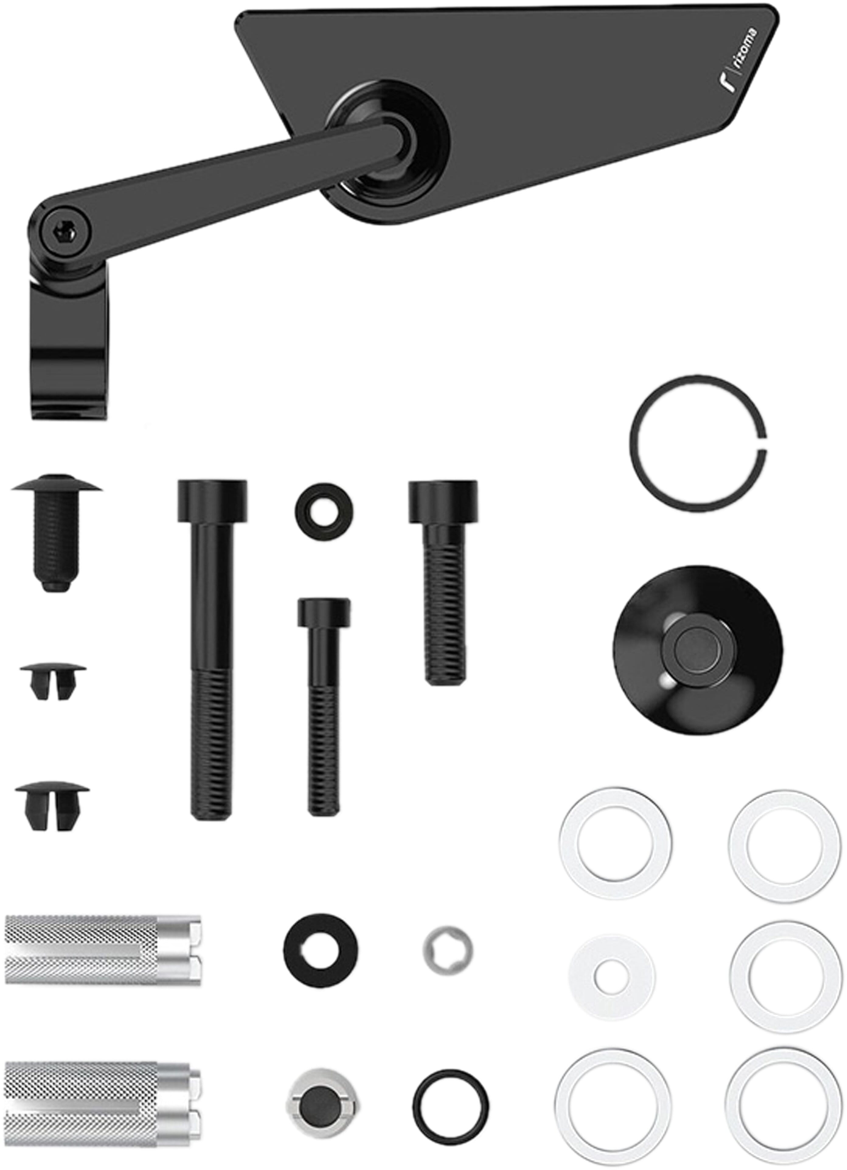 Rizoma Cut-Edge ist ein ultrakompakter Universal-Rückspiegel, dessen Design von Städten und den schärfsten Motorrädern inspiriert ist. Sportlich, schwarz, schlicht und mit einem Rahmen mit kräftigen Kanten versehen, verleiht es jedem Motorrad ein aggressives Aussehen. Es wertet nicht nur das Aussehen jedes Motorrads erheblich auf, sondern ist auch äusserst funktional: einfach zu installieren dank des mitgelieferten Universal-Montagesatzes verstellbar und mit einem technischen High-Definition-Glas ausgestattet, um hervorragende Sicht und Klarheit zu gewährleisten. Das Mehrfachverstellsystem des Spiegelarmes und das Neigungssystem des Spiegelkopfes ermöglichen die Montage des Spiegels nach oben oder unten eine hohe Anzahl individueller Konfigurationen. Die Oberfläche des Glases bietet ein Sichtfeld frei von Verzerrungen oder Unvollkommenheiten und sorgt so für ein neues Mass an Sicherheit und Aufmerksamkeit im Strassenverkehr. Cut-Edge besteht vollständig aus Aluminium und ist durch Präzisionsbearbeitung perfekt verarbeitet, leicht und langlebig.