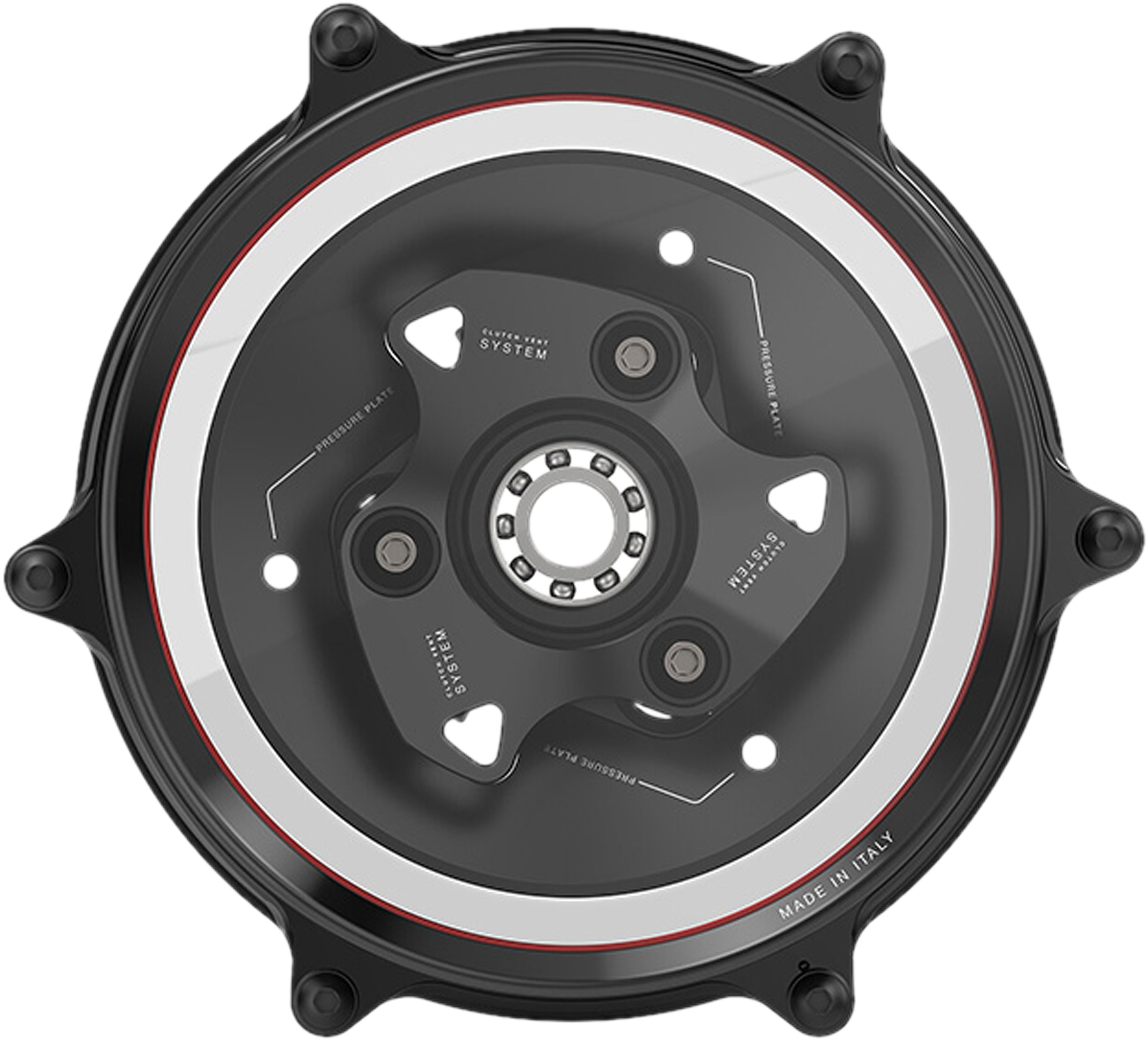Die randlose Aluminium-Abdeckung ist mit einem hochmodernen klaren und blendfreien Lexan-Fenster ausgestattet, das Enthusiasten die Möglichkeit bietet, die Schönheit des Kupplungsdesigns zu präsentieren und zu bewundern.