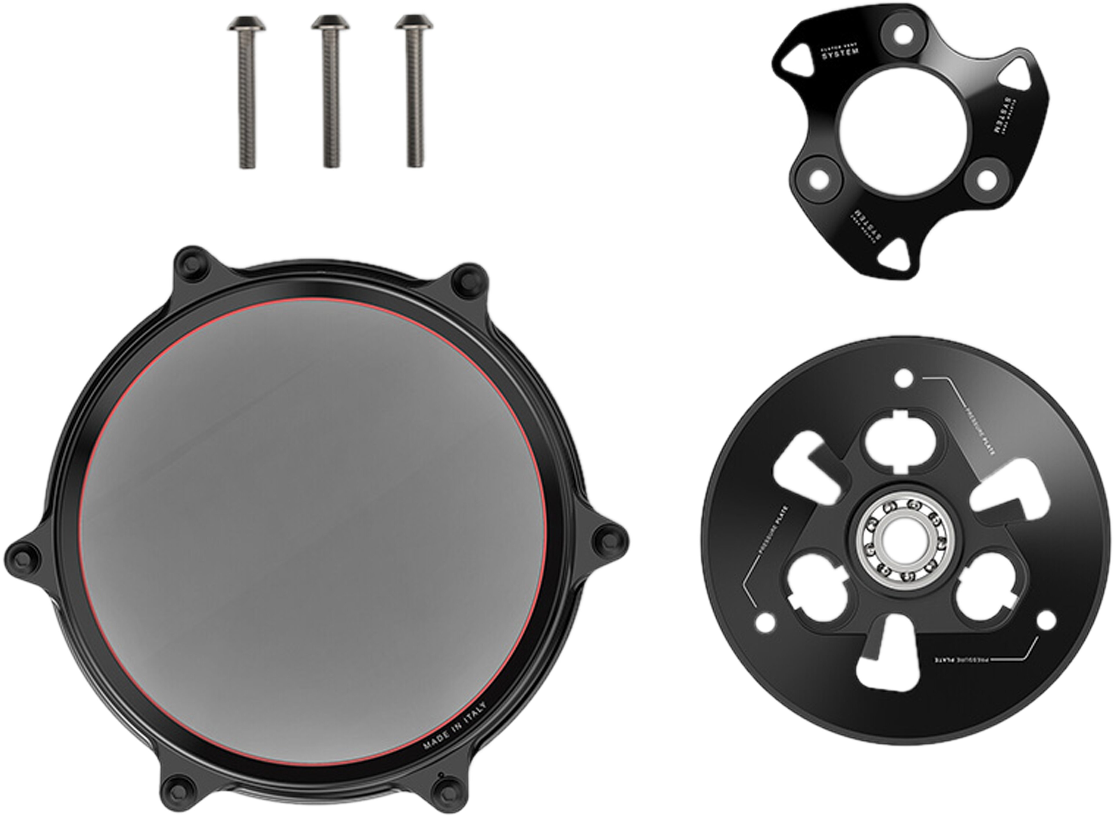 Die internen Komponenten wurden entwickelt, um sowohl ästhetische als auch technische Exzellenz sicherzustellen. Das Clutch Vent System, bestehend aus einer leichten Aluminium-Druckplatte und Druckring, ist speziell für die maximale Optimierung des Kupplungsölkreislaufs innerhalb der Abdeckung konzipiert. Zusätzlich hat Rizoma Titan-Schrauben für die Befestigung der inneren Teile ausgewählt, um bewegte Massen zu minimieren und die mechanische Stärke zu erhöhen.Für ein besseres Kauf- und Montageerlebnis wird die Kupplungsabdeckung als Kit verkauft, das alle für den vollständigen Austausch der OEM-Komponenten erforderlichen Teile enthält, einschliesslich eines vormontierten Druckplattenkugellagers, und wurde für eine schnelle Plug-and-Play-Installation konzipiert.