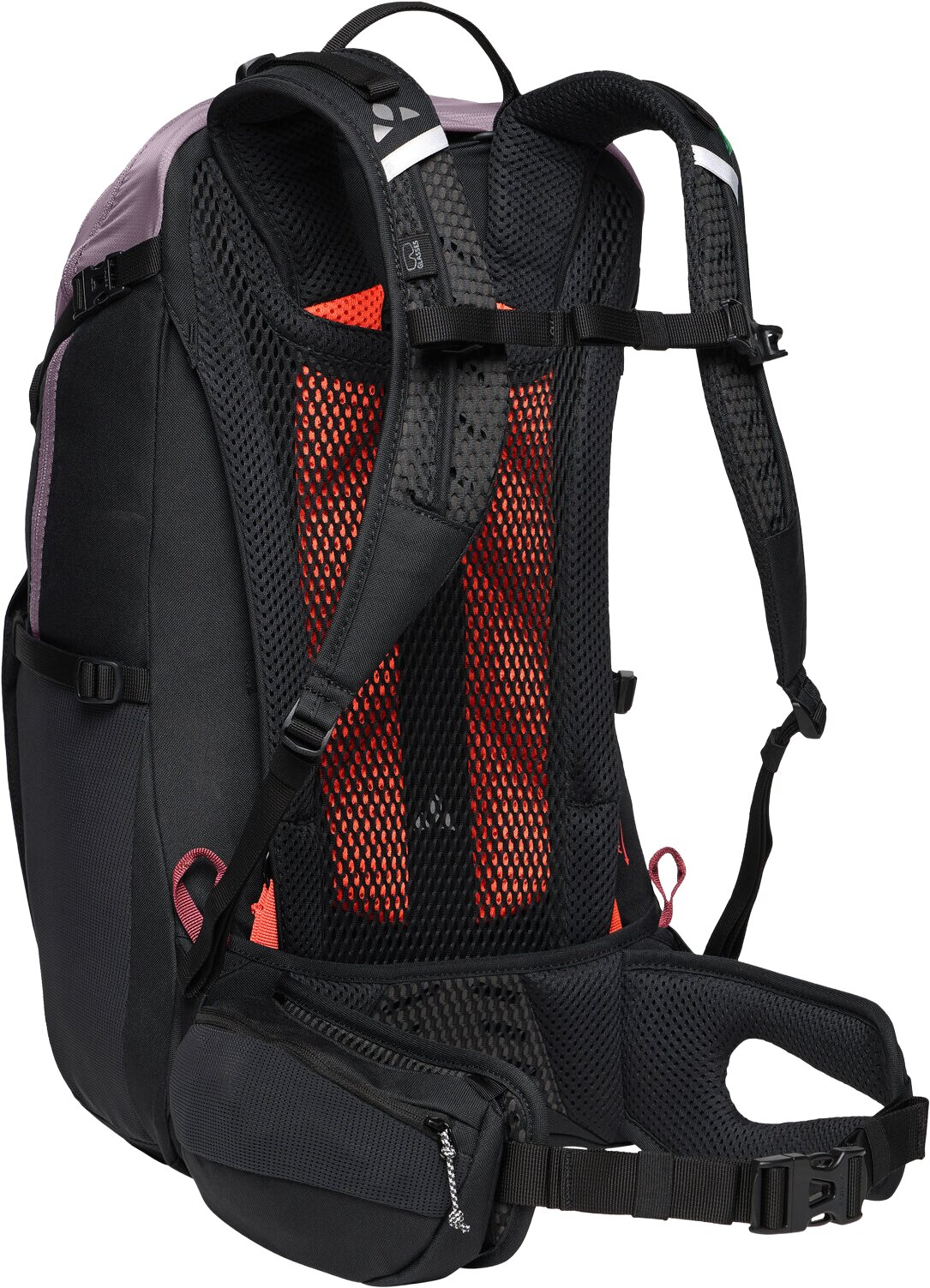 Beim TrailControl Fahrrad Rucksack mit 20+ Litern kommt das namensgebende Aeroflex Control System zum Tragen - im wahrsten Sinne des Wortes! Mit diesem Tragesystem hat man beim Hochpedalieren einen hinterlüfteten Rücken. Am Traileinstieg dann an zwei Schlaufen ziehen und schon hat man einen Kontaktrücken und den Schwerpunkt angenehm nah am Körper. Die Rückenlänge lässt sich stufenlos verstellen. Stauraum bieten ein grosses Hauptfach, Netzfächer an den Seiten und eine Reissverschluss-Tasche auf dem rechten Hüftgurt-Flügel. Wenn der Helm auf dem Kopf ist, lässt sich zusätzlich auch im Helmfach etwas transportieren. Organisationsmöglichkeiten bieten ein Fach für Werkzeug, ein Organizer und ein Schlüsselring. Mit seitlichen Kompressionsriemen, Brust- und Hüftgurt sowie reflektierenden Elementen. Eine Regenhülle ist inklusive. Das Material des TrailControl Fahrrad-Rucksackes ist mit Eco Finish wasser- und schmutzabweisend ausgerüstet. VAUDE verzichtet dabei auf Fluorcarbone, sogenannte PFAS- beziehungsweise PFC-Chemikalien, die im Verdacht stehen, gesundheitsschädlich zu sein.