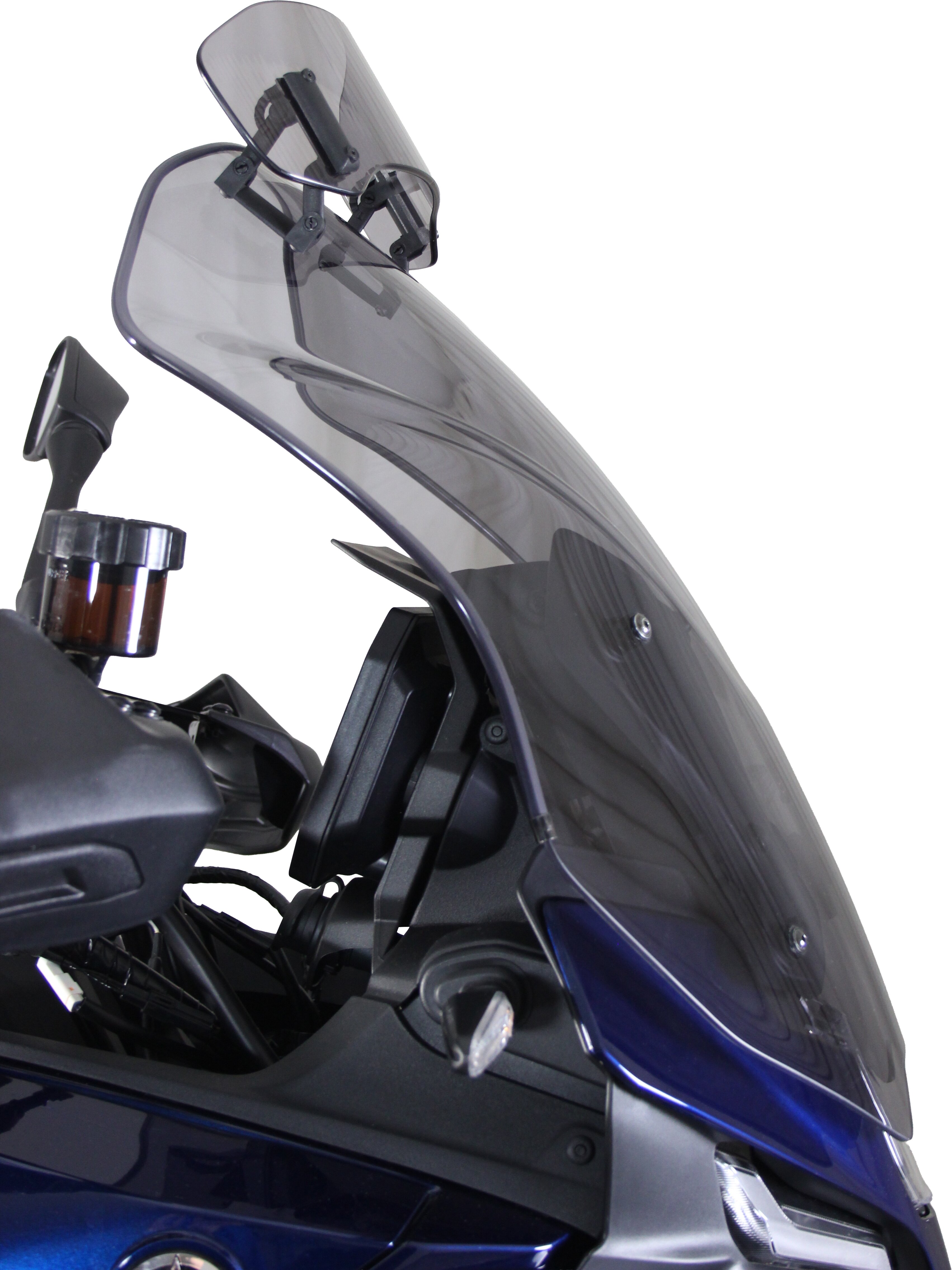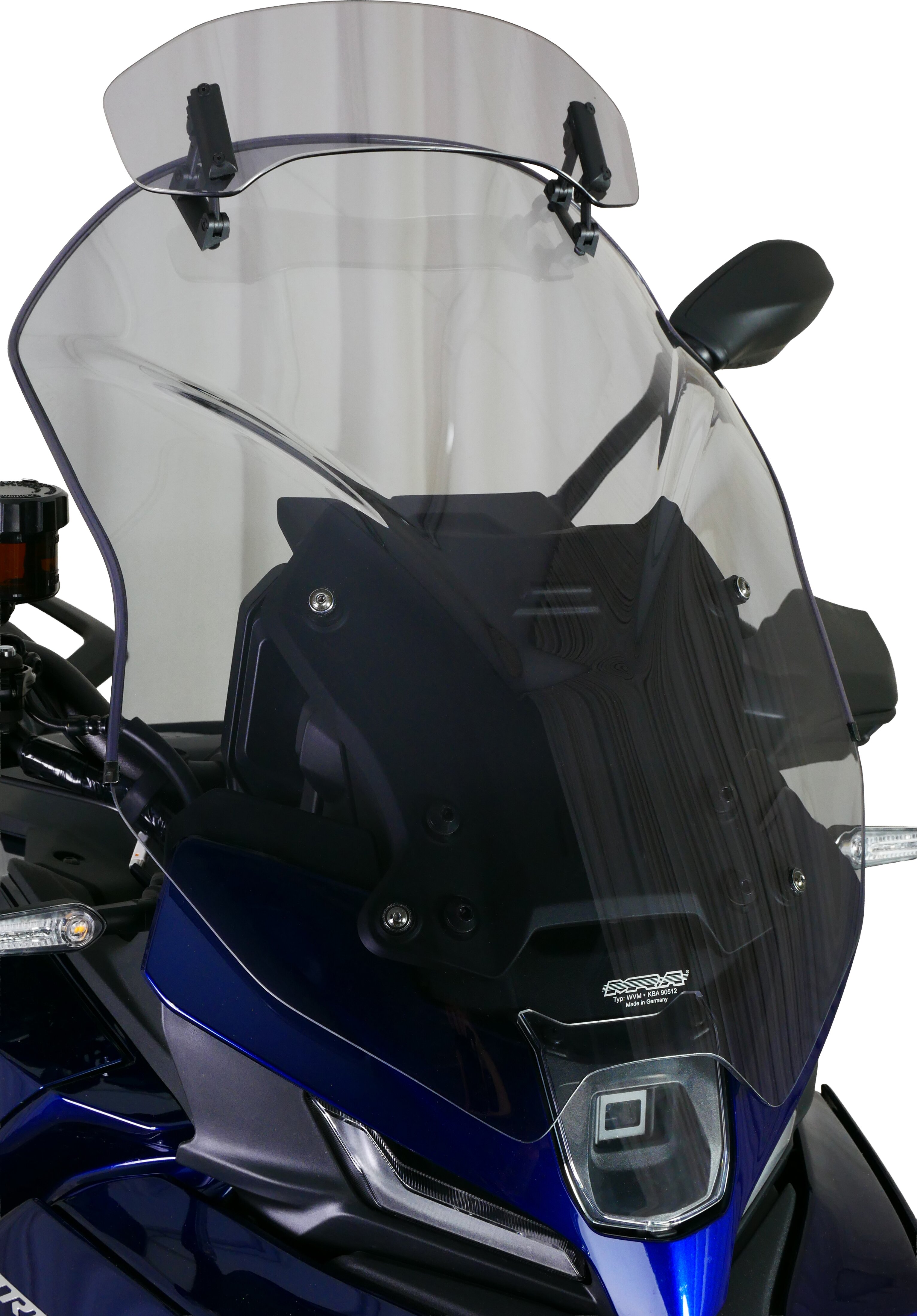 Diese Tourenscheibe hat am Ende einen Spoiler, der sich manuell in sieben Stufen auf die gewünschte Position verstellen lässt. Durch die Hinterströmumg des Spoilers wird der Winddruck vom Fahrer genommen und gleichzeitig die Turbulenzen reduziert. Die Vario- Touringscreen ist in klar und rauchgrau erhältlich.
