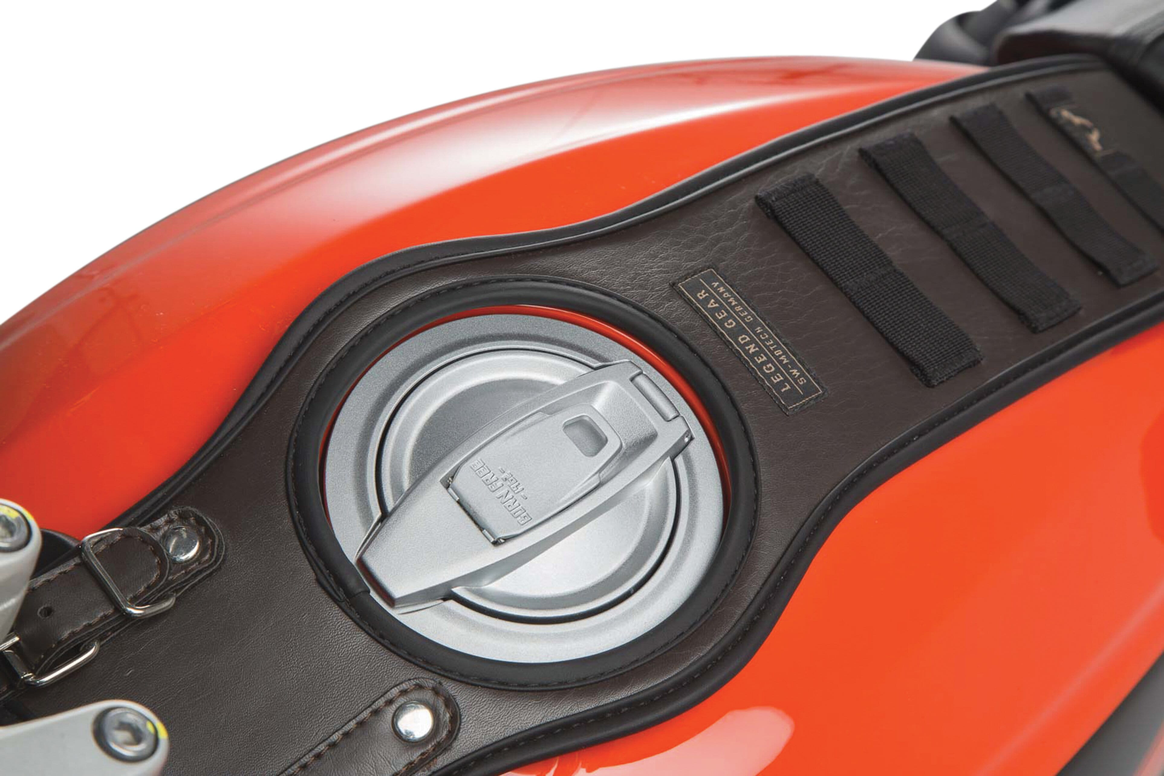 L’adaptation optimale à la forme du réservoir garantit la coupe précise de la courroie de réservoir, tout comme la parfaite cohabitation avec le tracé des motos rétro actuelles et des Cafe Racers.