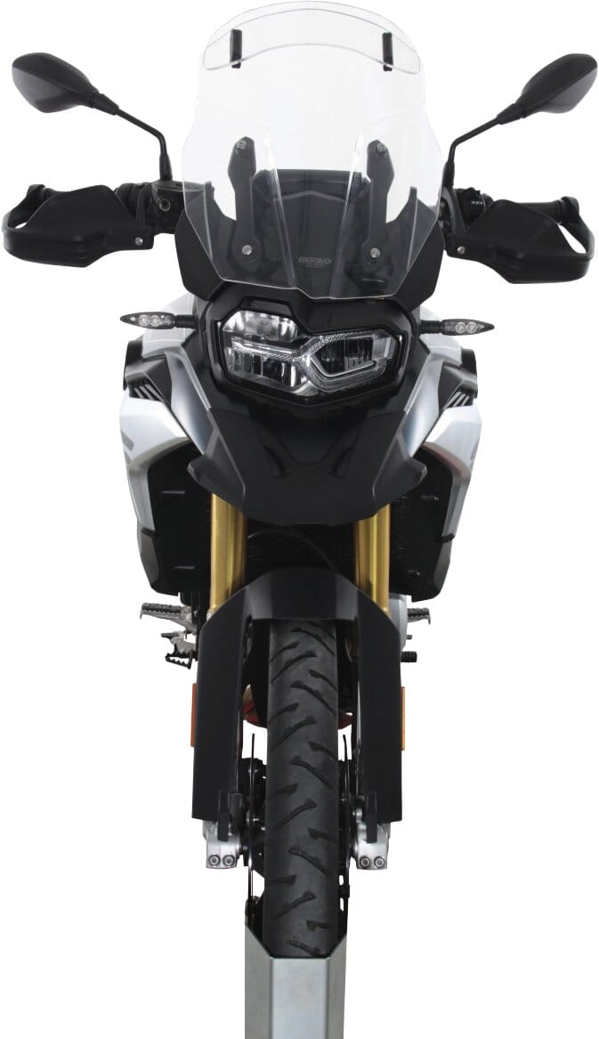 Ce pare-brise de touring est équipé d'un spoiler à l'extrémité, qui peut être ajusté manuellement en sept positions pour atteindre la position souhaitée. Grâce à l'écoulement d'air derrière le spoiler, la pression du vent sur le conducteur est réduite et les turbulences sont diminuées. Le Vario-Touringscreen est disponible en clair et en gris fumé.