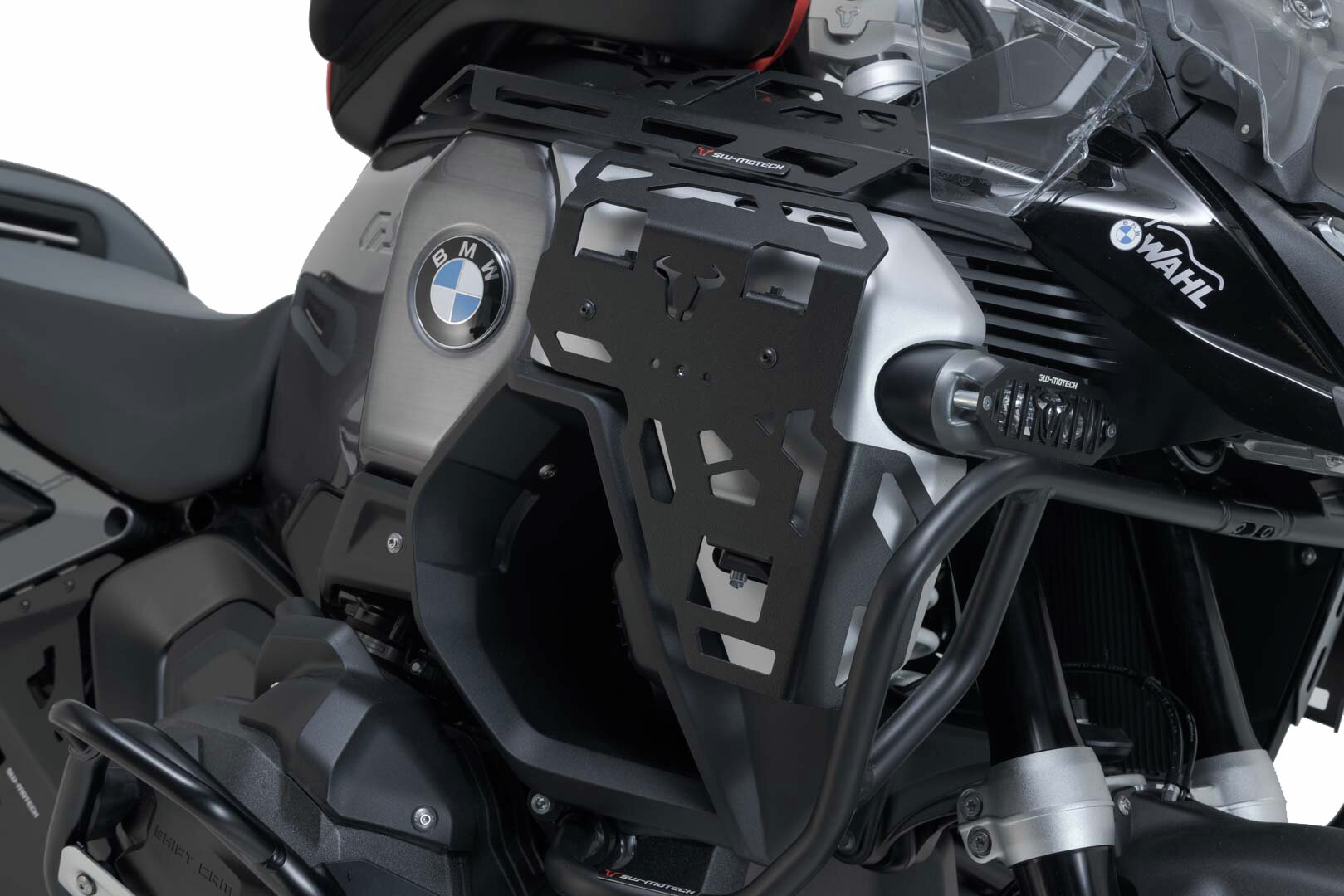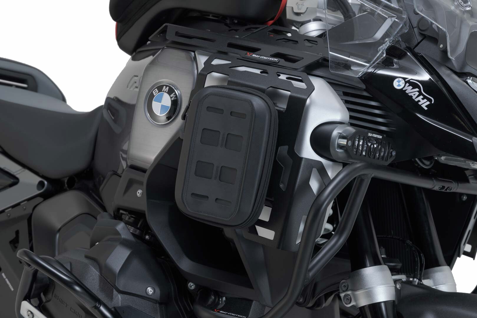 Sur ce porte-bagages pour le cache-radiateur de la BMW R 1300 GS Adventure, il est possible de fixer de petites sacoches pour un transport pratique des bagages. La construction en tôle d'aluminium de 3 mm est adaptée aux lignes de la moto et offre un support pour des sacoches supplémentaires comme la PRO Pocket ou le Drybag 80.