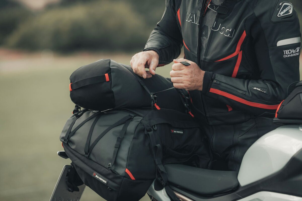 Avec un volume de 18 litres, la sacoche de selle PRO Tentbag permet de ranger la plupart des tentes deux places. La Tentbag polyvalente peut également servir d'espace de stockage supplémentaire pour des vêtements et d'autres bagageries. Grâce aux sangles fournies, tu peux attacher en un tour de main la sacoche aux autres grandes sacoches de selle PRO comme la PRO Cargobag. La sacoche de selle de la série PRO est fabriquée en nylon balistique 1680 D extrêmement résistant, initialement développé à des fins militaires. De plus, il convainc par une finition de haute qualité et des caractéristiques bien pensées : des bandes réfléchissantes assurent une meilleure visibilité et des crochets de fixation robustes maintiennent en toute sécurité les sacoches d'une manière simple et rapide à l'arrière.Les crochets de fixation permettent une fixation flexible de la sacoche de selle PRO. Un seul geste suffit dès lors pour ancrer et tendre la sangle. Pour retirer la sacoche, la sangle est relâchée en un seul geste, et s'enlève de l'anneau de fixation en tirant sur le cordon. Il est possible de bloquer la longueur de sangle en trop grâce à un système Velcro®. La sacoche peut être utilisée sur différentes motos en adaptant la longueur de la sangle.