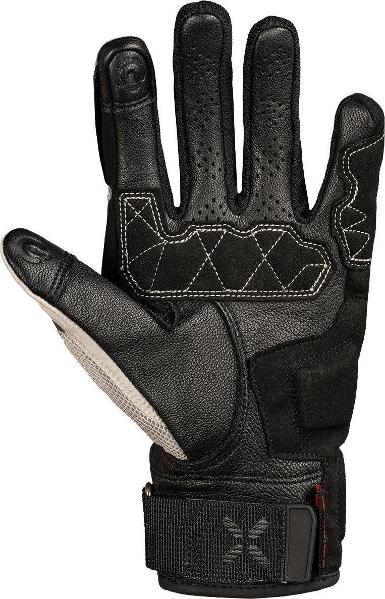 Le dessus associe une maille aérée résistante à l’abrasion et du cuir de chèvre robuste, pour un équilibre parfait entre circulation d’air et durabilité sur les longues virées estivales. La manchette courte améliore le confort et la liberté de mouvement au niveau du poignet. Sur la paume, des zones renforcées en cuir renforcent la solidité sans nuire au toucher des commandes. Des empiècements en SuperFabric® sur les articulations offrent une protection contre les impacts sans ajouter de volume.