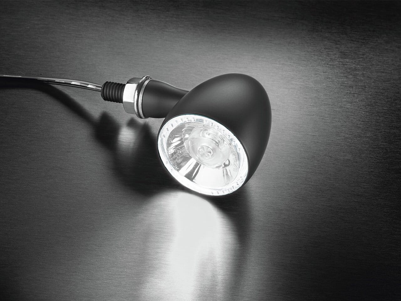 Le Bullet 1000 PL blanc est un clignotant avec feu de position intégré sous forme d'un anneau lumineux blanc. Ces anneaux lumineux brillants s'allument avec le phare principal, augmentant ainsi la sécurité sur la route. Lors de l'activation du clignotant, le feu de position est temporairement désactivé automatiquement, ce qui permet au clignotant de se démarquer plus clairement.