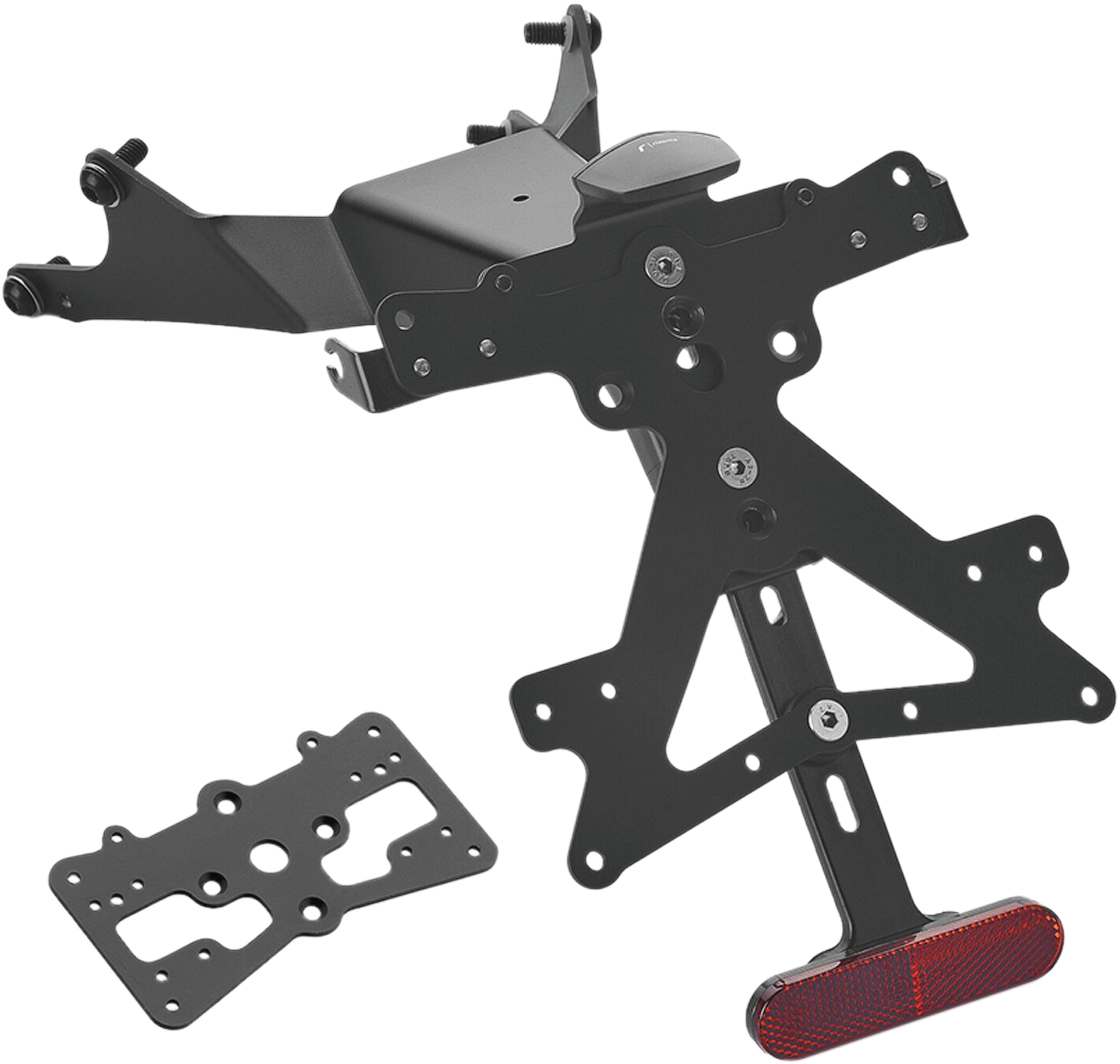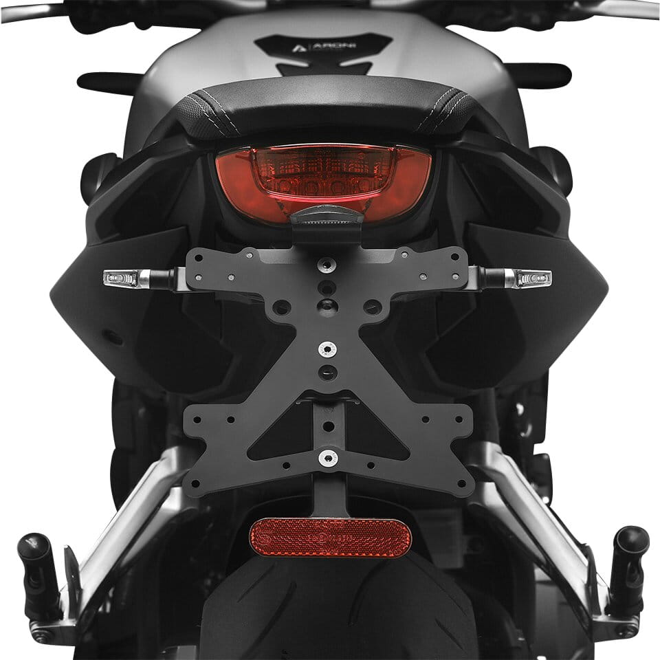 Le support de plaque d'immatriculation Fox en aluminium est spécialement conçu pour chaque modèle de moto. Cela lui permet non seulement de s'adapter parfaitement aux lignes de la moto, mais aussi de se distinguer par une installation simple et rapide. Chaque kit contient toutes les pièces de montage nécessaires, sans qu'il soit nécessaire de modifier les pièces OEM. Fonctionnalité maximale dans un espace réduit et respect des normes d'homologation. Les kits Fox comprennent un éclairage de plaque d'immatriculation à LED SMD, un réflecteur et des adaptateurs pour clignotants Rizoma, sont réglables et équipés d'un dispositif de verrouillage pour fixer l'inclinaison correcte.