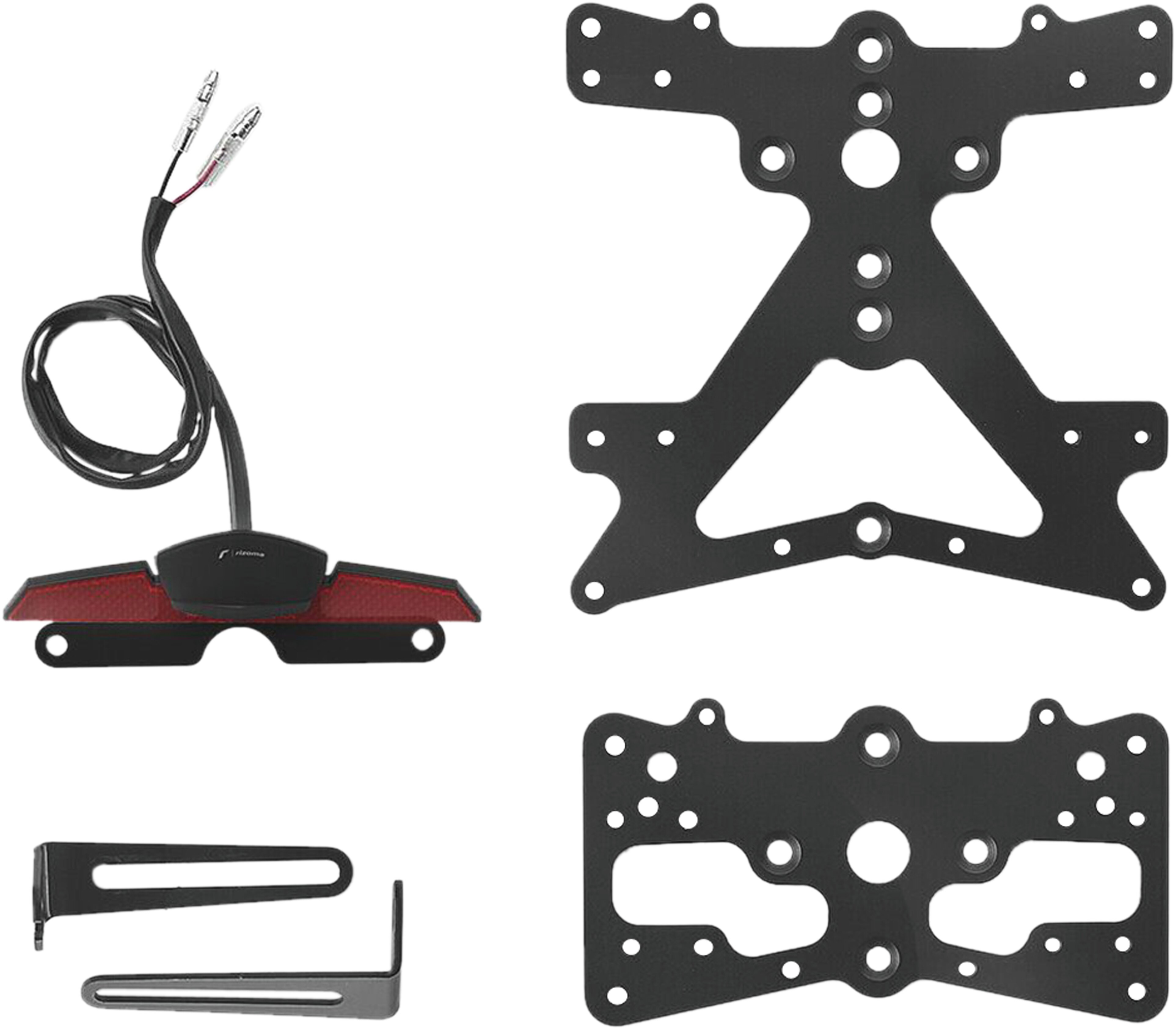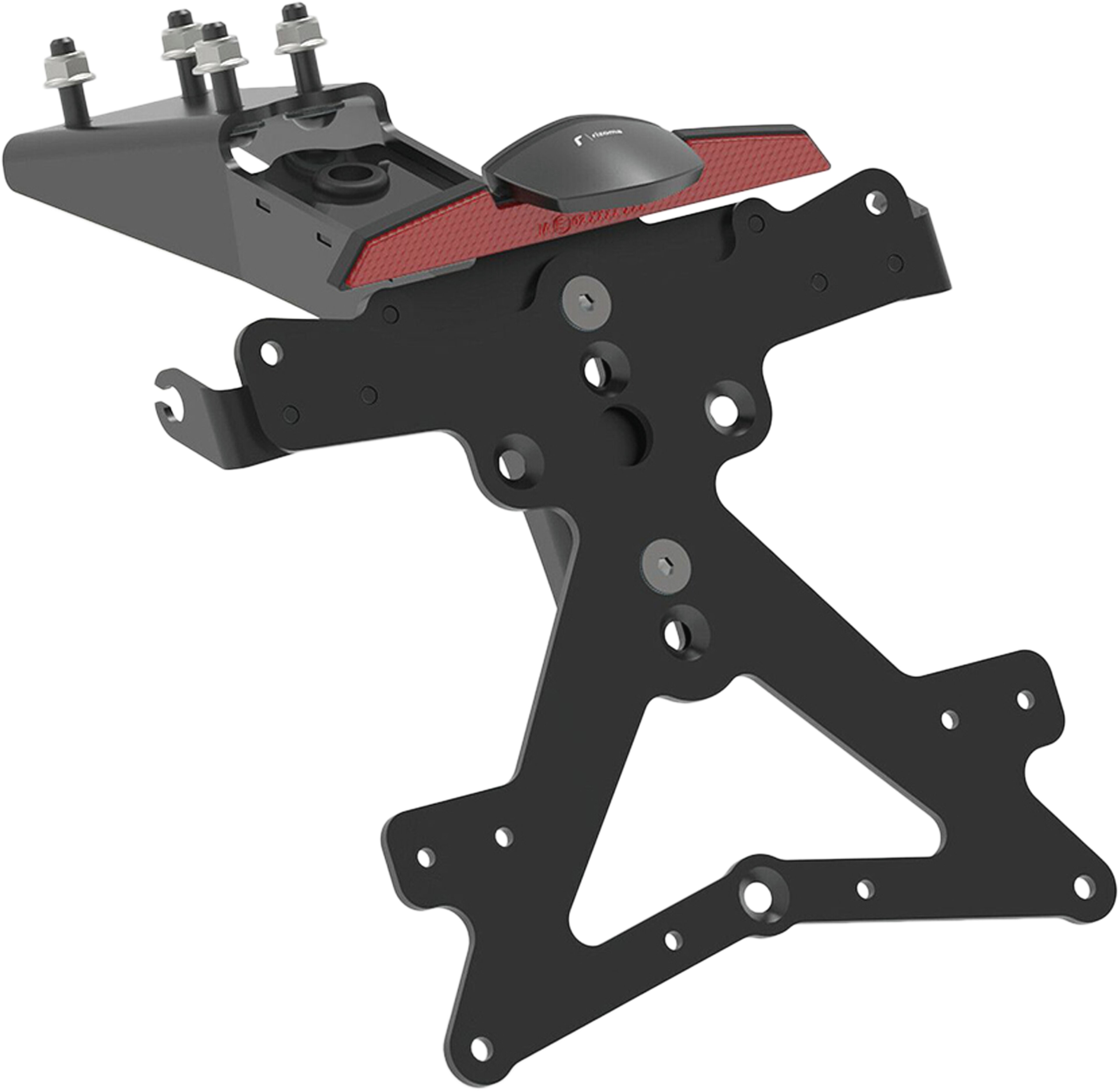 Le support de plaque d'immatriculation Fox en aluminium est spécialement conçu pour chaque modèle de moto. Cela lui permet non seulement de s'adapter parfaitement aux lignes de la moto, mais aussi de se distinguer par une installation simple et rapide. Chaque kit contient toutes les pièces de montage nécessaires, sans qu'il soit nécessaire de modifier les pièces OEM. Fonctionnalité maximale dans un espace réduit et respect des normes d'homologation. Les kits Fox comprennent un éclairage de plaque d'immatriculation à LED SMD, un réflecteur et des adaptateurs pour clignotants Rizoma, sont réglables et équipés d'un dispositif de verrouillage pour fixer l'inclinaison correcte.
