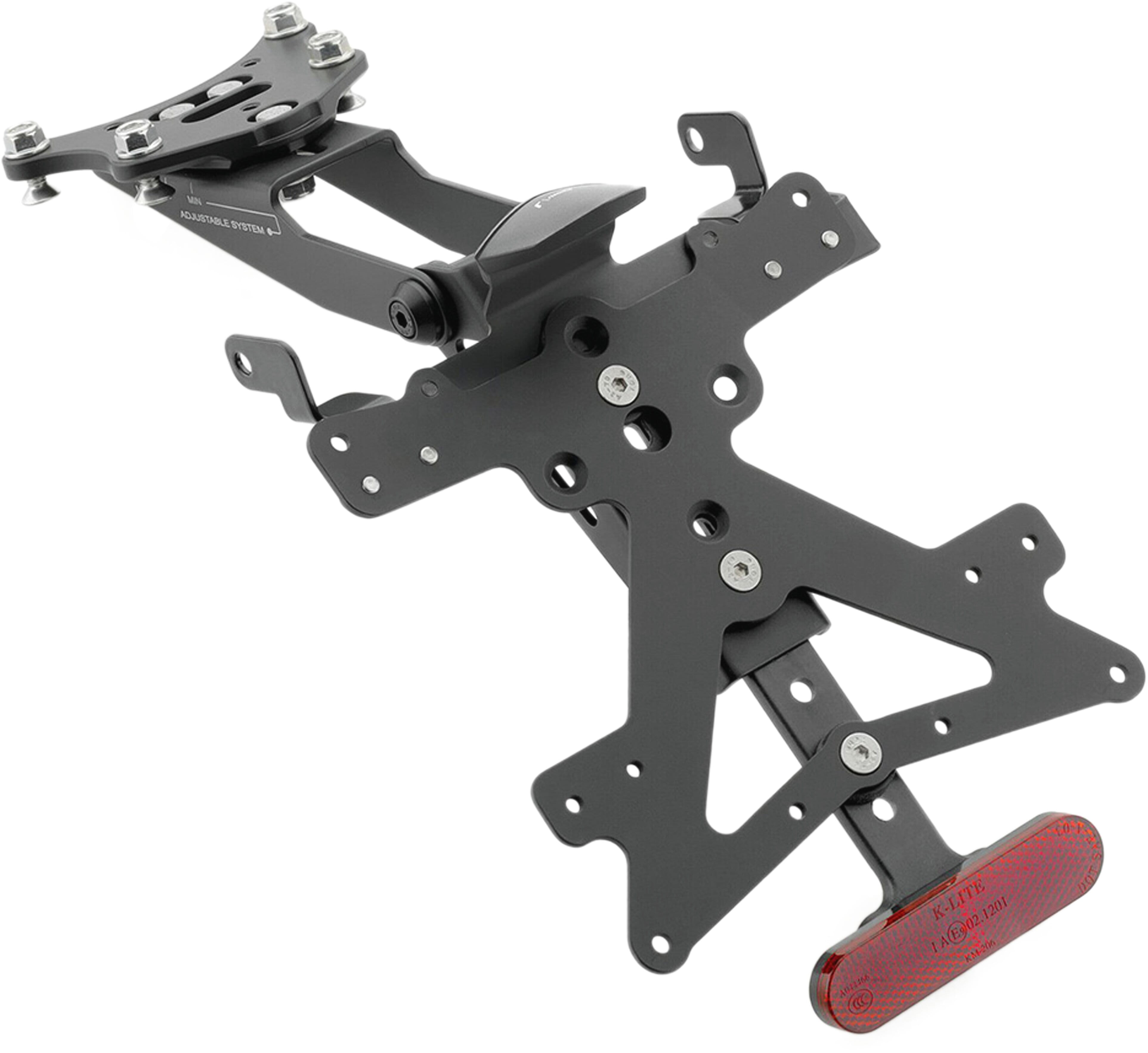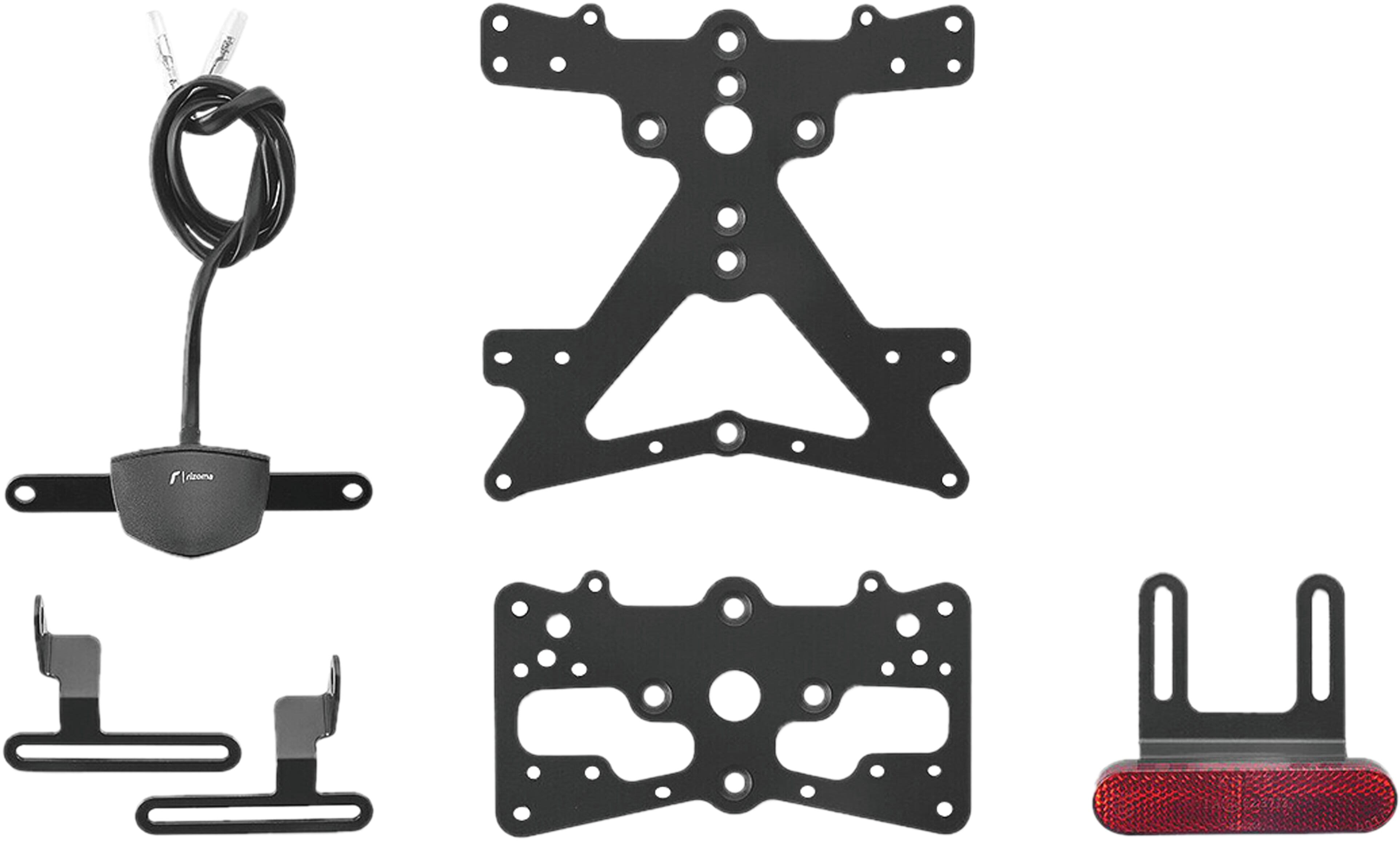 Le support de plaque d'immatriculation Fox en aluminium est spécialement conçu pour chaque modèle de moto. Cela lui permet non seulement de s'adapter parfaitement aux lignes de la moto, mais aussi de se distinguer par une installation simple et rapide. Chaque kit contient toutes les pièces de montage nécessaires, sans qu'il soit nécessaire de modifier les pièces OEM. Fonctionnalité maximale dans un espace réduit et respect des normes d'homologation. Les kits Fox comprennent un éclairage de plaque d'immatriculation à LED SMD, un réflecteur et des adaptateurs pour clignotants Rizoma, sont réglables et équipés d'un dispositif de verrouillage pour fixer l'inclinaison correcte.
