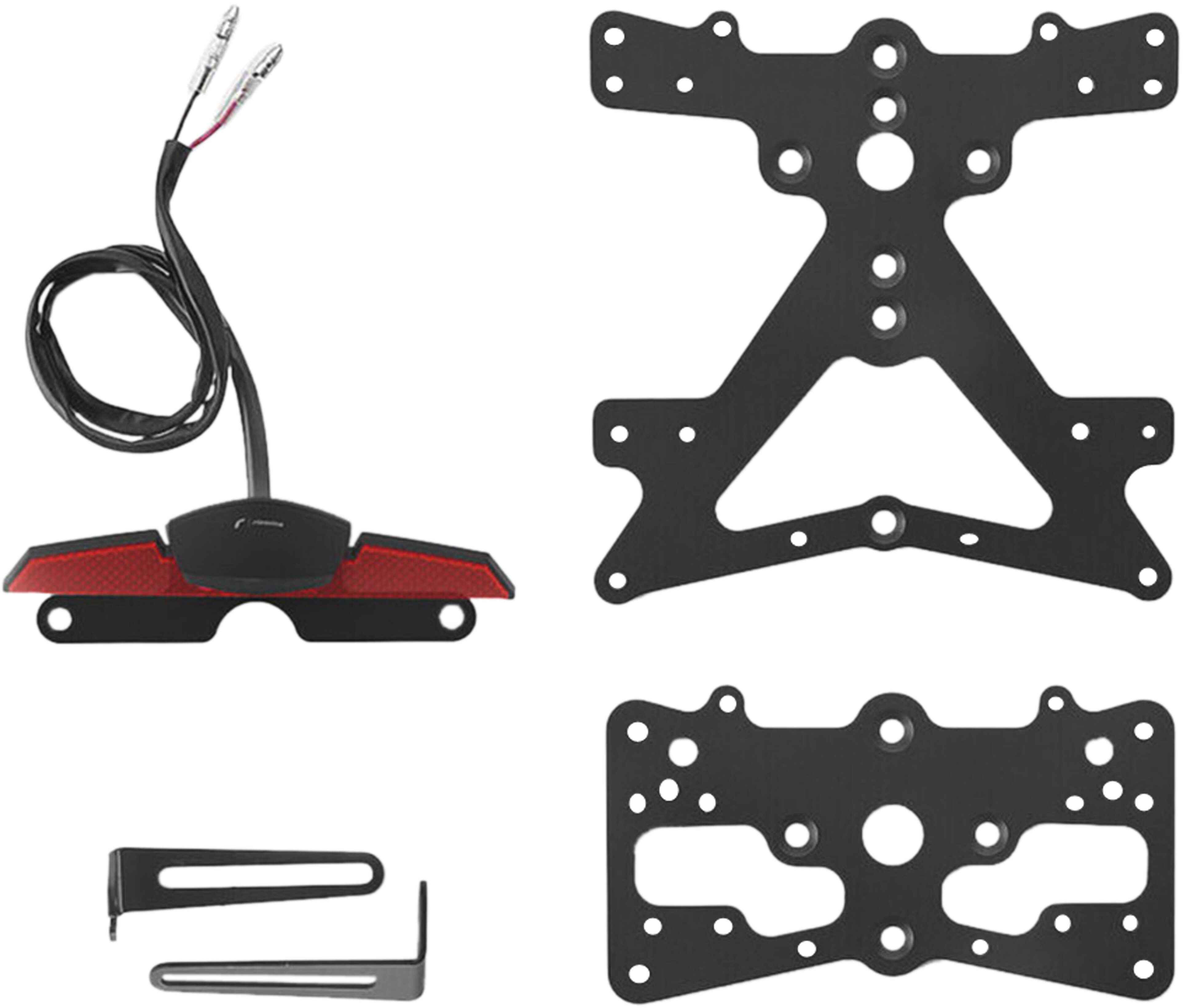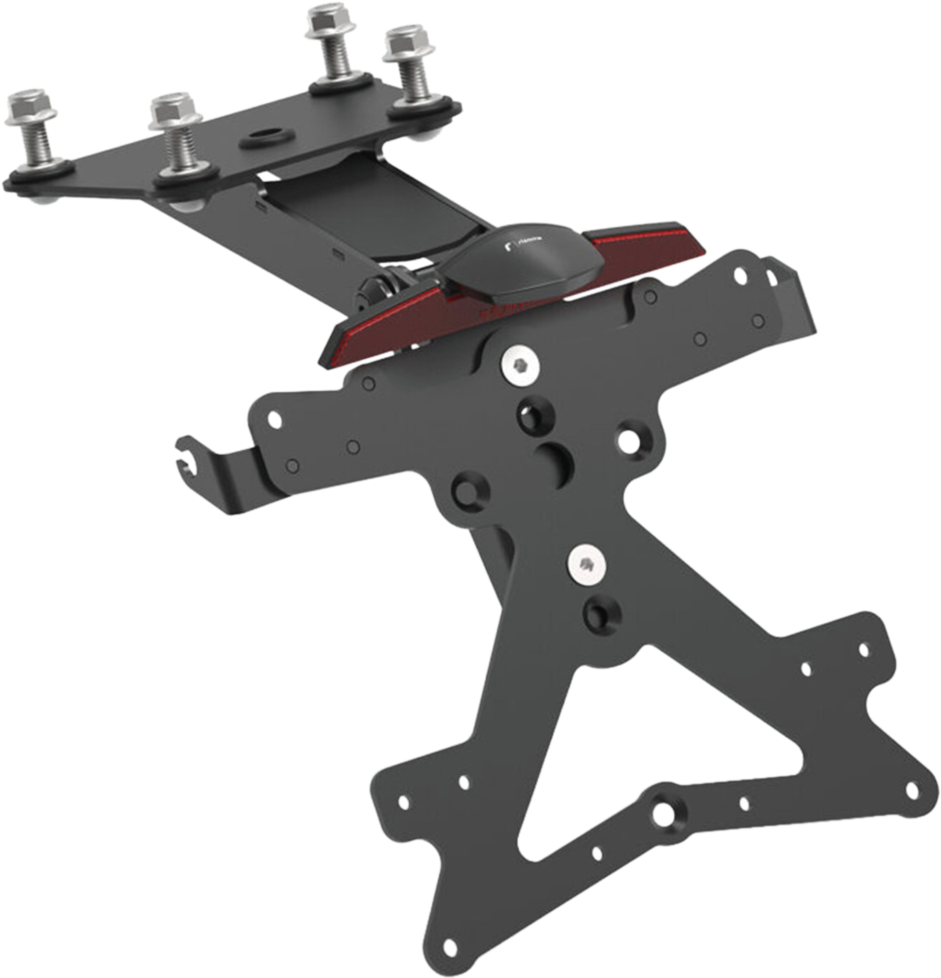 Le support de plaque d'immatriculation Fox en aluminium est spécialement conçu pour chaque modèle de moto. Cela lui permet non seulement de s'adapter parfaitement aux lignes de la moto, mais aussi de se distinguer par une installation simple et rapide. Chaque kit contient toutes les pièces de montage nécessaires, sans qu'il soit nécessaire de modifier les pièces OEM. Fonctionnalité maximale dans un espace réduit et respect des normes d'homologation. Les kits Fox comprennent un éclairage de plaque d'immatriculation à LED SMD, un réflecteur et des adaptateurs pour clignotants Rizoma, sont réglables et équipés d'un dispositif de verrouillage pour fixer l'inclinaison correcte.