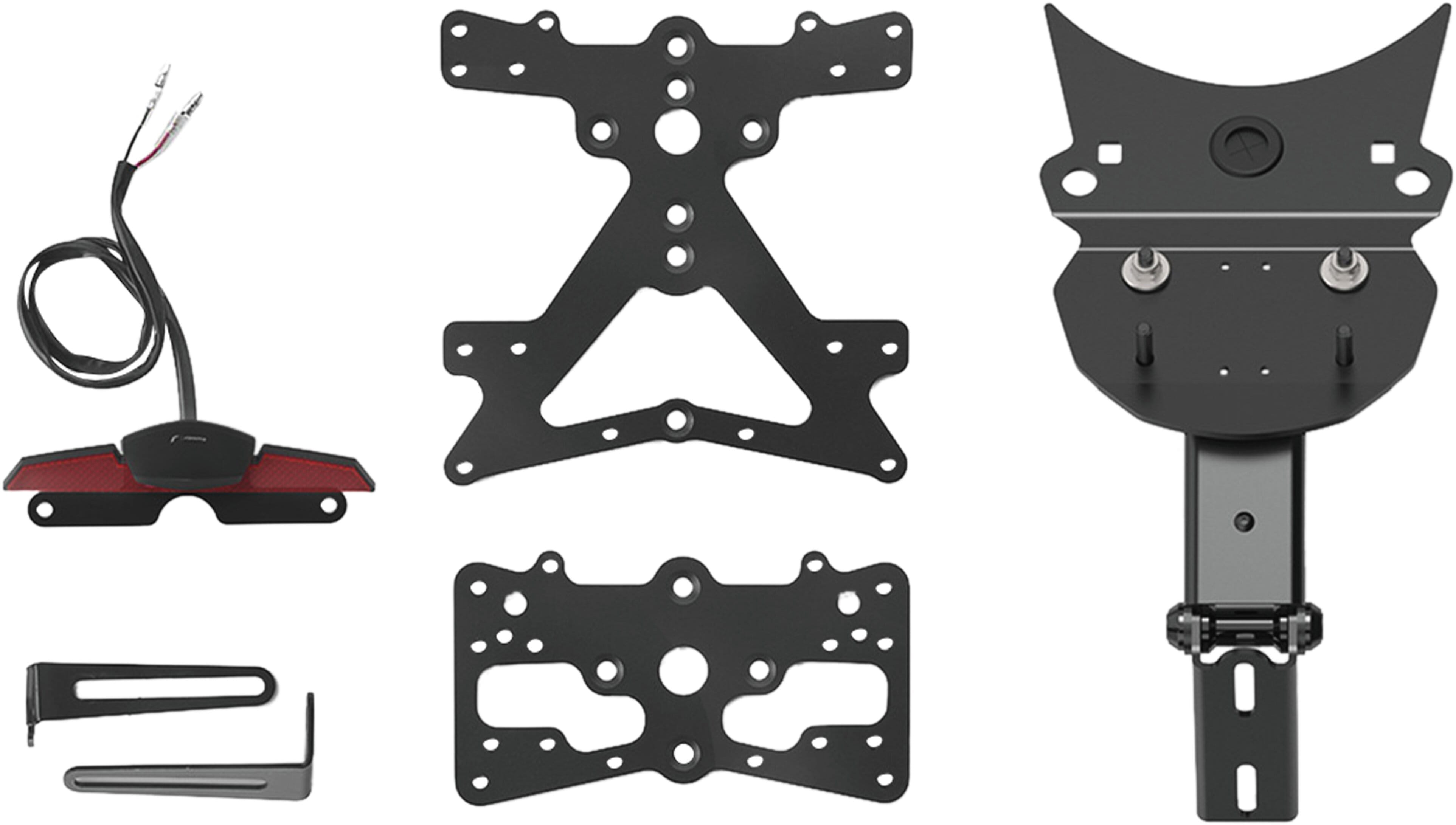 Le support de plaque d'immatriculation Fox en aluminium est spécialement conçu pour chaque modèle de moto. Cela lui permet non seulement de s'adapter parfaitement aux lignes de la moto, mais aussi de se distinguer par une installation simple et rapide. Chaque kit contient toutes les pièces de montage nécessaires, sans qu'il soit nécessaire de modifier les pièces OEM. Fonctionnalité maximale dans un espace réduit et respect des normes d'homologation. Les kits Fox comprennent un éclairage de plaque d'immatriculation à LED SMD, un réflecteur et des adaptateurs pour repositionner les clignotants OEM ainsi que les adaptateurs nécessaires pour le montage éventuel de clignotants Rizoma, sont réglables et équipés d'un dispositif de verrouillage pour fixer l'inclinaison correcte.