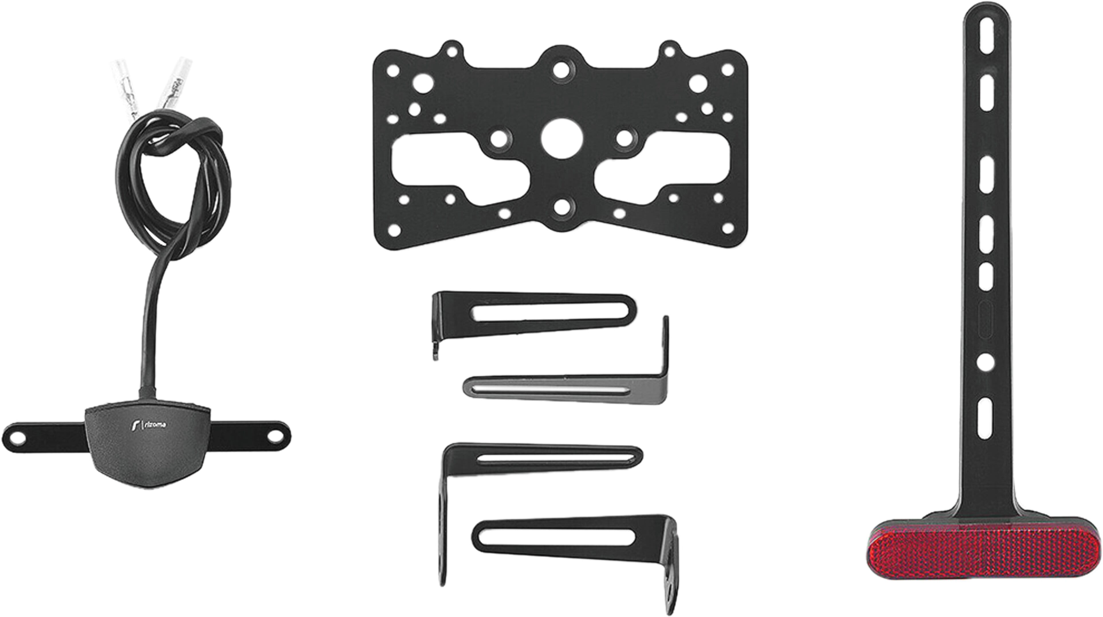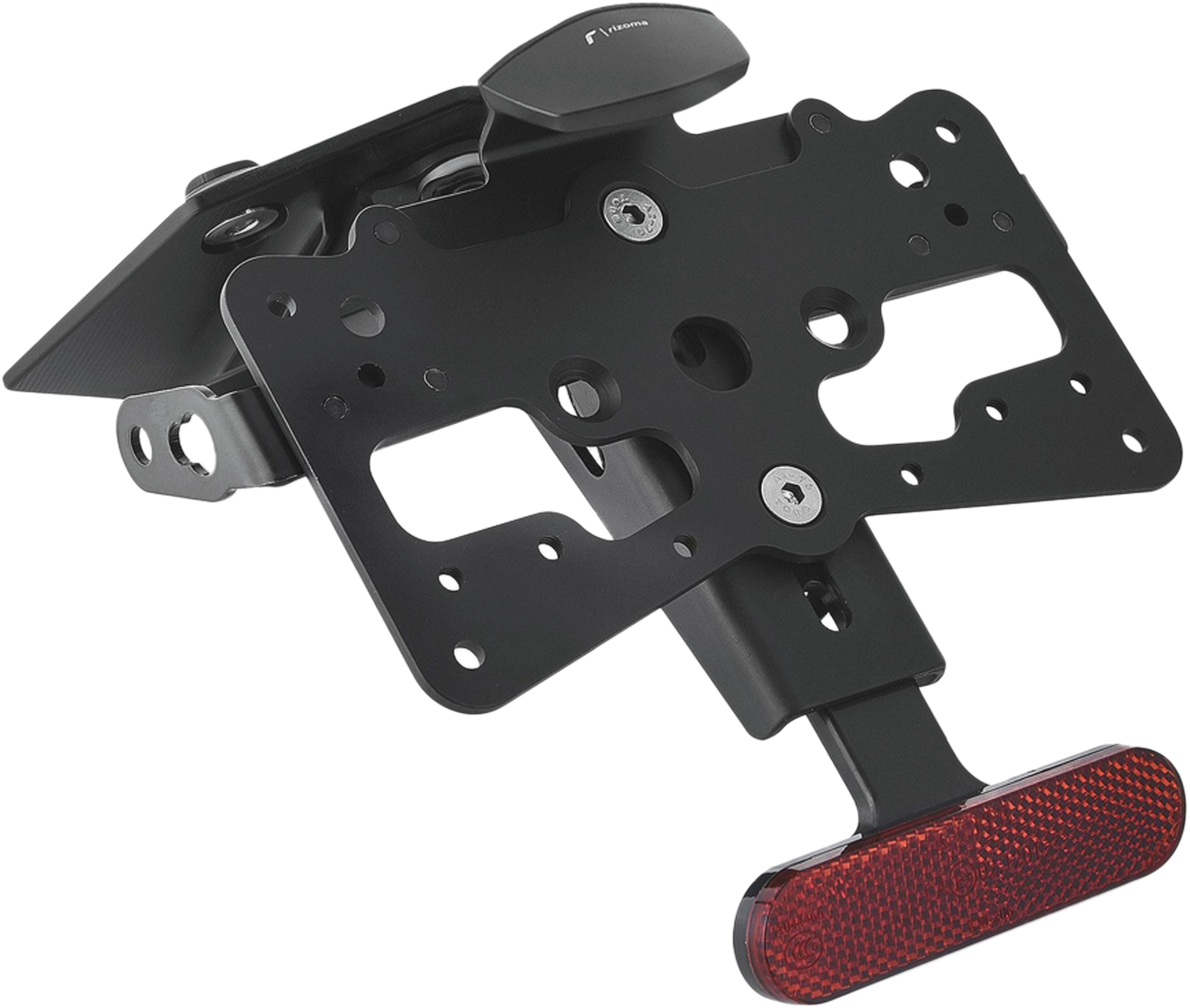 Le support de plaque d'immatriculation Fox en aluminium est spécialement conçu pour chaque modèle de moto. Cela lui permet non seulement de s'adapter parfaitement aux lignes de la moto, mais aussi de se distinguer par une installation simple et rapide. Chaque kit contient toutes les pièces de montage nécessaires, sans qu'il soit nécessaire de modifier les pièces OEM. Fonctionnalité maximale dans un espace réduit et respect des normes d'homologation. Les kits Fox comprennent un éclairage de plaque d'immatriculation à LED SMD et des adaptateurs pour clignotants Rizoma, sont réglables et équipés d'un dispositif de verrouillage pour fixer l'inclinaison correcte.
