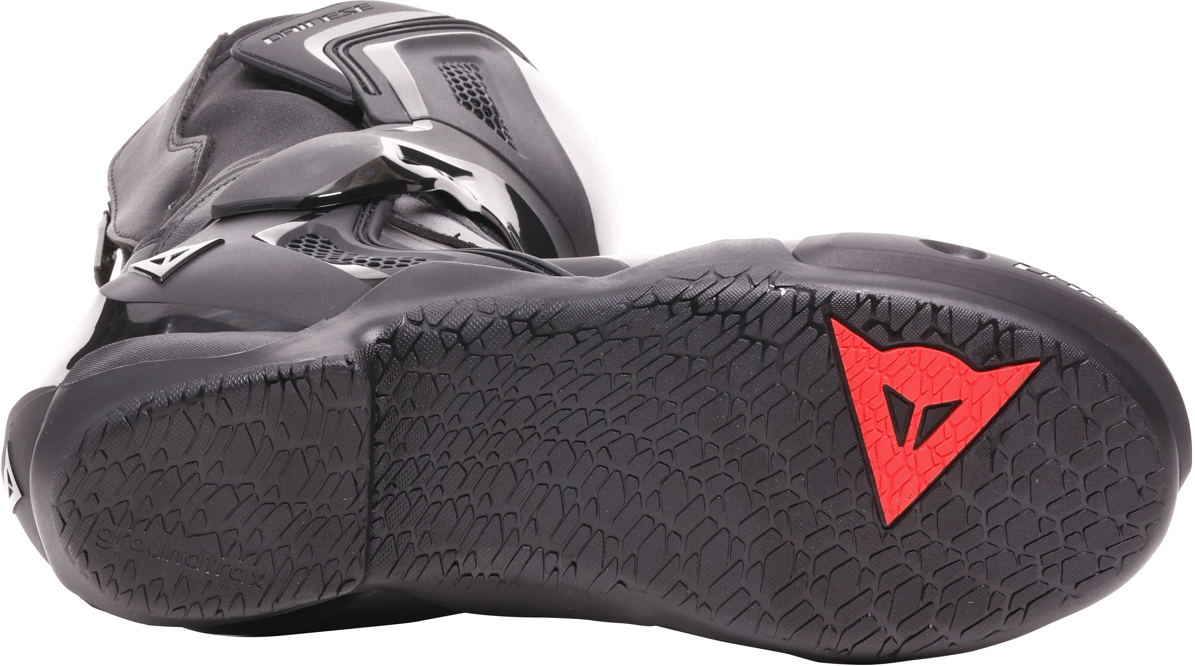 Le niveau de protection est complété par le curseur d’orteils, interchangeable avec les versions en métal ou en plastique, et la protection du sélecteur en TPU. La zone médiane du talon présente des finitions texturées pour une meilleure adhérence à la moto.