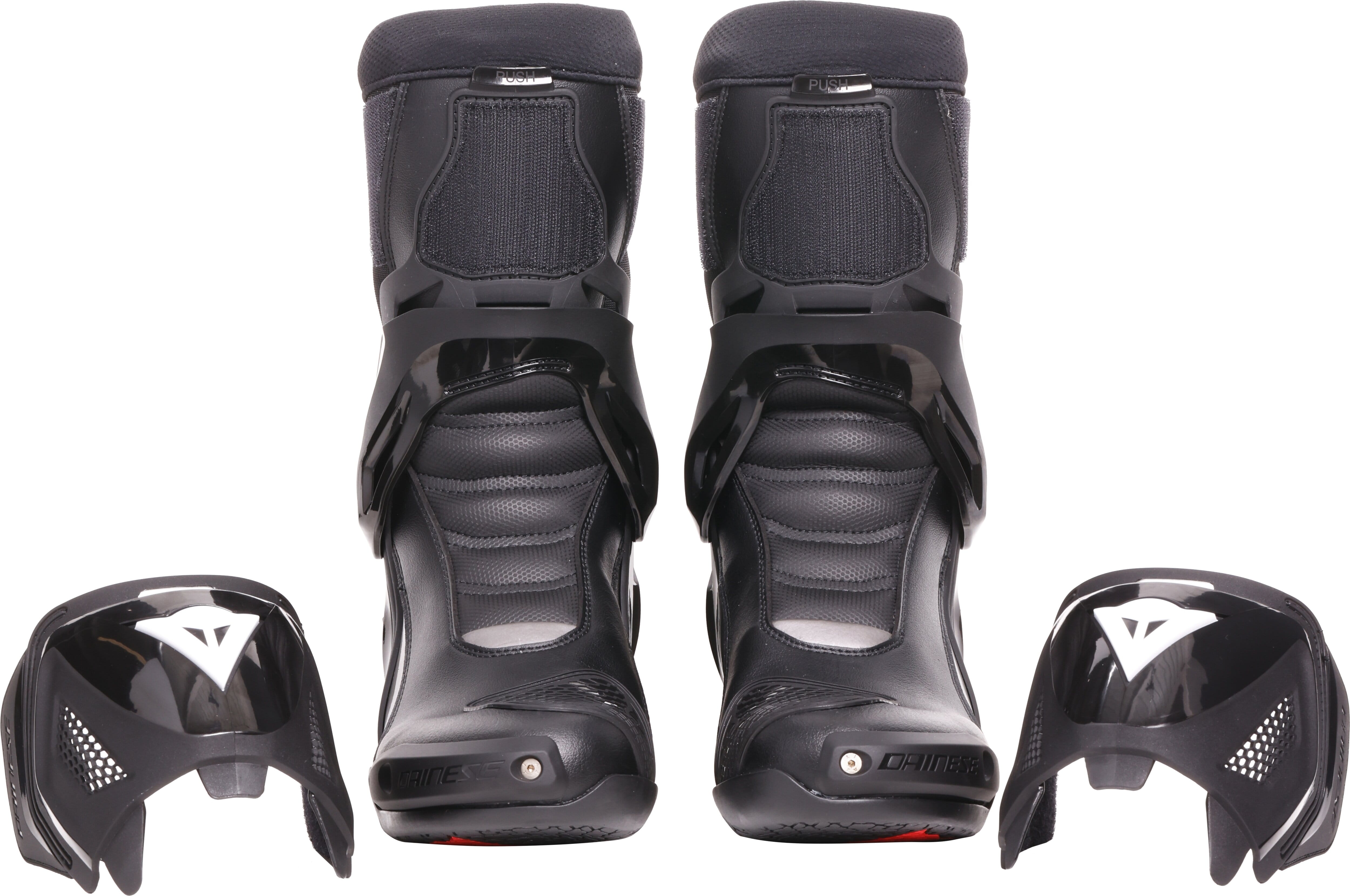 Les plus hauts niveaux de protection de la cheville, du tibia et du talon sont assurés par le système Axial, et les semelles innovantes Groundtrax® sont conçues pour garantir adhérence et résistance à la chaleur.Conçues pour être portées de deux manières : en dessous de la combinaison ou du pantalon, sans protège-tibia, pour une plus grande liberté de mouvement et de confort, tout en conservant la protection garantie par le système anti-torsion ; ou bien par-dessus la combinaison ou le pantalon, avec le protège-tibia intégré pour une protection encore plus complète.La structure avec la fermeture éclair de 10 mm sur le dos, résistant à la casse, la tige intérieure en tissu D-Stone, le haut niveau de flexion et le confort sur les articulations garantissent un confort maximal lors de la conduite dans les deux modes d’utilisation.Elles sont également extrêmement pratiques grâce à leur facilité d’enfilage et de fermeture.