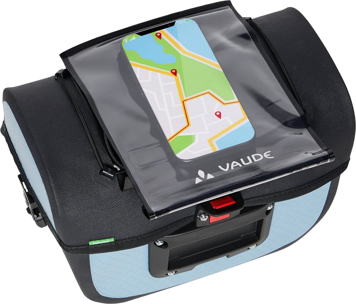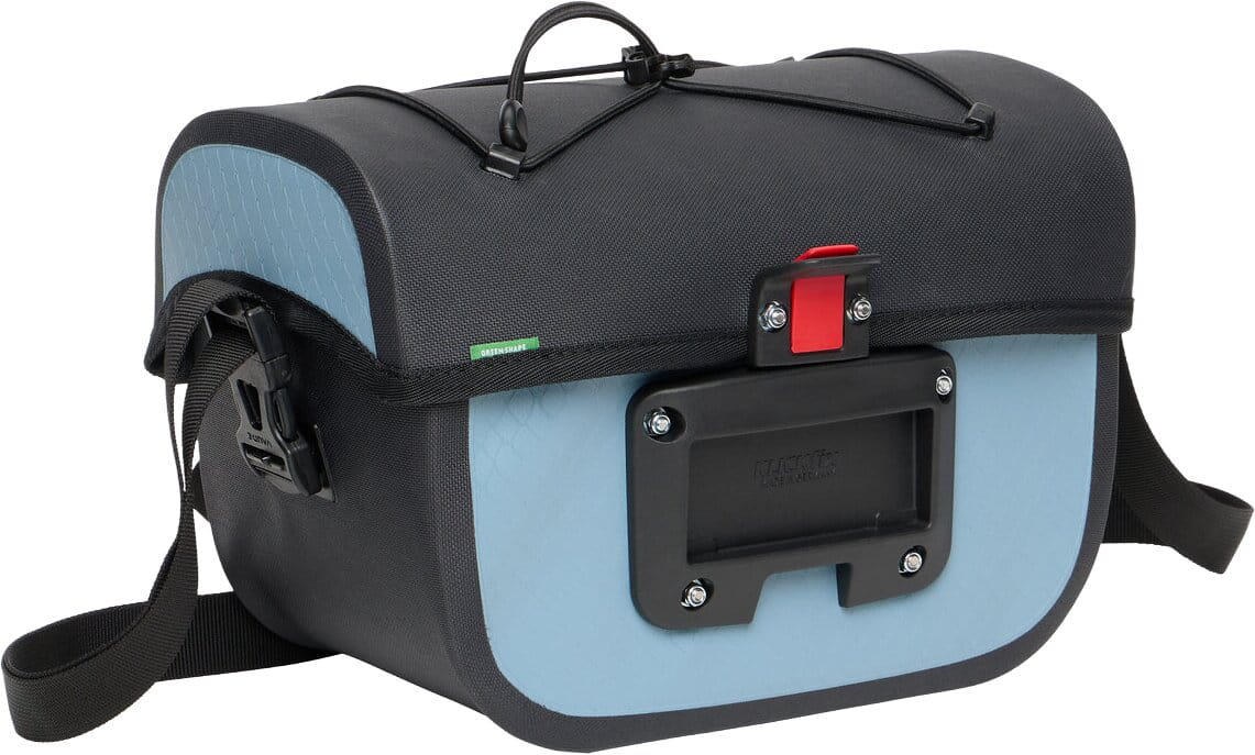 La sacoche de guidon Aqua Box pour les voyages à vélo, d’un volume de 4 litres, permet de garder les objets importants toujours à portée de main et dans le champ de vision. Cette sacoche étanche s’ouvre facilement d’une seule main et dispose d’un compartiment principal spacieux avec une poche plaquée supplémentaire zippée. Une bandoulière amovible assure un transport confortable. Sur le couvercle, un cordon élastique permet de fixer des porte-cartes transparents pour la navigation (Beguided small, Beguided big – non inclus) ou de ranger rapidement des gants ou une veste coupe-vent. La sacoche de guidon Aqua Box est équipée du système KLICKfix ready, ce qui signifie que la plaque de fixation adaptatrice est montée et que l’adaptateur KLICKfix peut être choisi précisément pour s’adapter au guidon (standard ou vélo électrique) (non inclus).