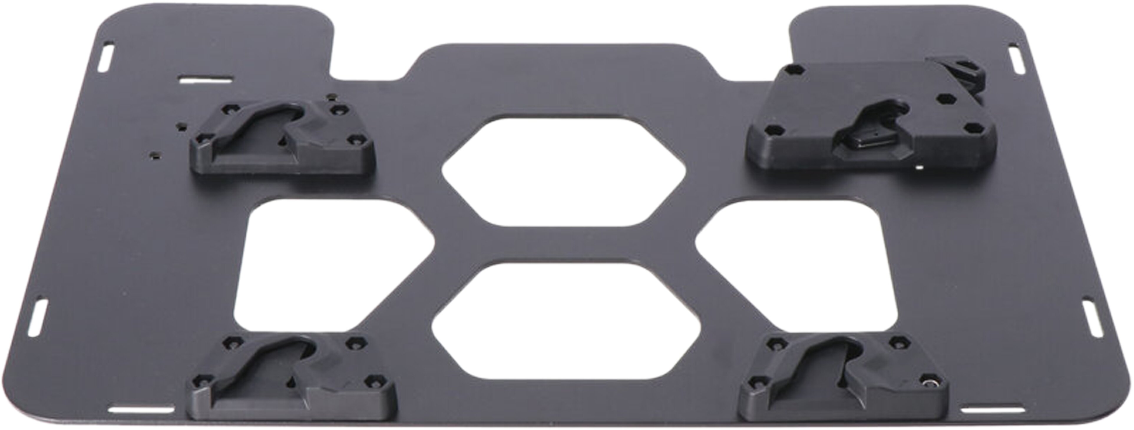 Les plaques d'adaptation te permettent de fixer ton sac SysBag WP sur un support latéral ou un porte-bagages. Avant la première utilisation, il suffit de visser la fixation à 3 points fournie sur la plaque d'adaptation. Des sangles sont intégrées à l'arrière des sacoches SysBag WP, avec lesquelles la plaque d'adaptation est ensuite fixée à la sacoche.