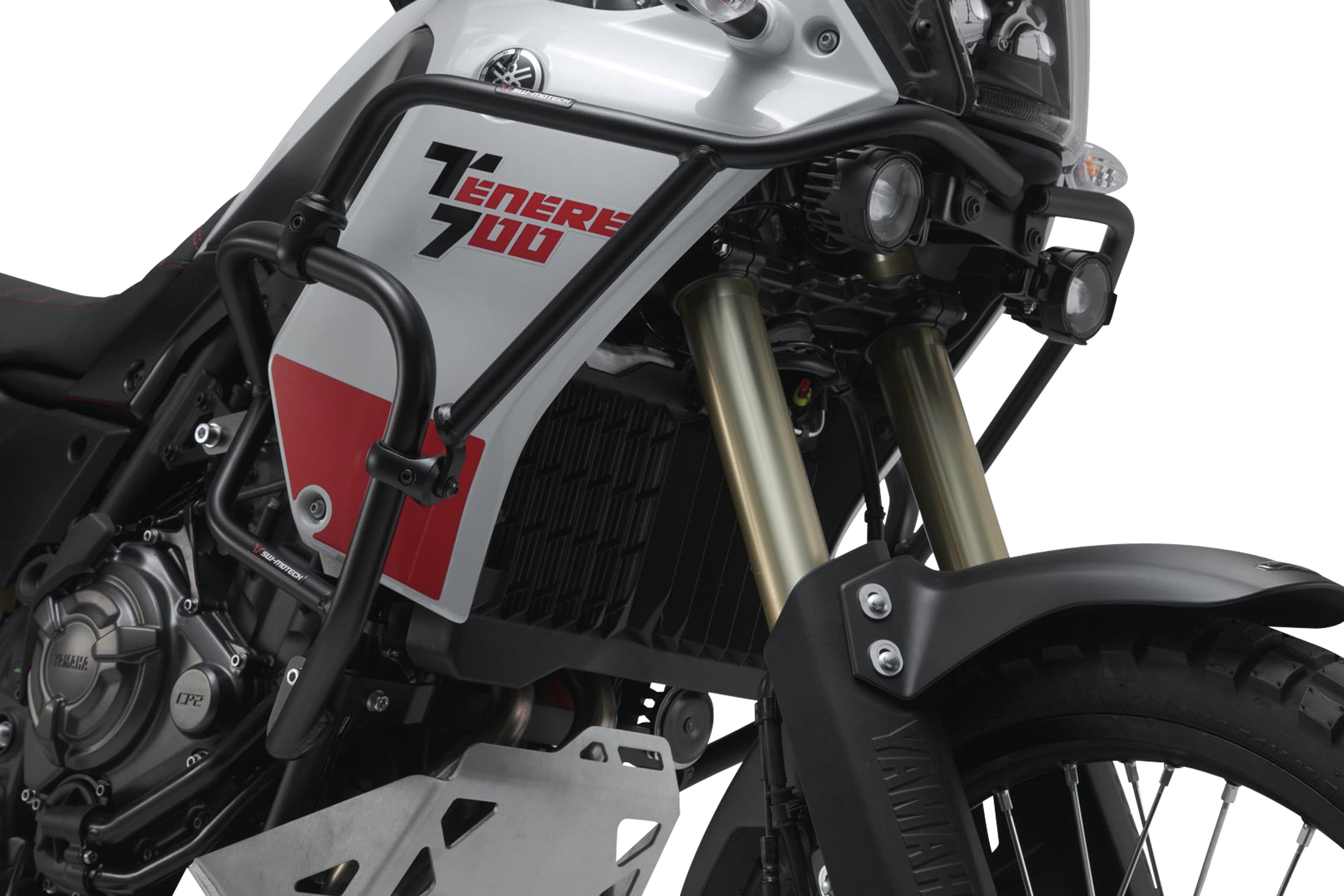 Conformes à l'apparence de la Yamaha Ténéré 700, les barres de protection en tube d'acier de 22 mm de diamètre sont proposées avec un revêtement en poudre résistant aux intempéries et à la corrosion en noir. Le traitement de surface est réalisé dans une installation ultramoderne de l'usine SW-MOTECH à Brno, en République tchèque.