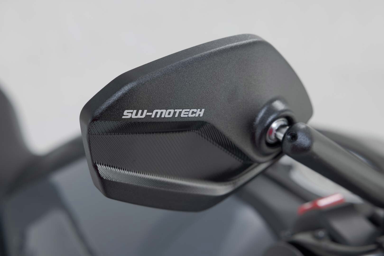 Les rétroviseurs réglables au design moderne et plat sont fabriqués par SW-MOTECH en aluminium anodisé noir. Les bras des rétroviseurs sont constitués d'éléments réglables en continu et sont extensibles de 30 millimètres chacun. Les nombreuses possibilités de réglage des rétroviseurs offrent au pilote une meilleure sécurité grâce à une meilleure vue d'ensemble de son environnement.