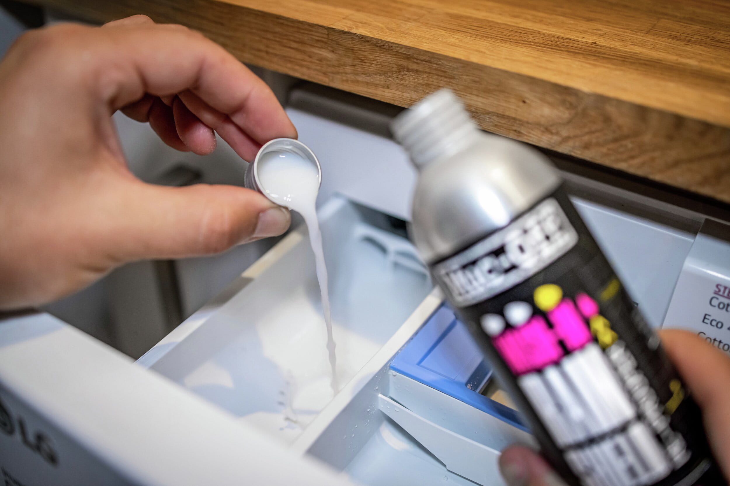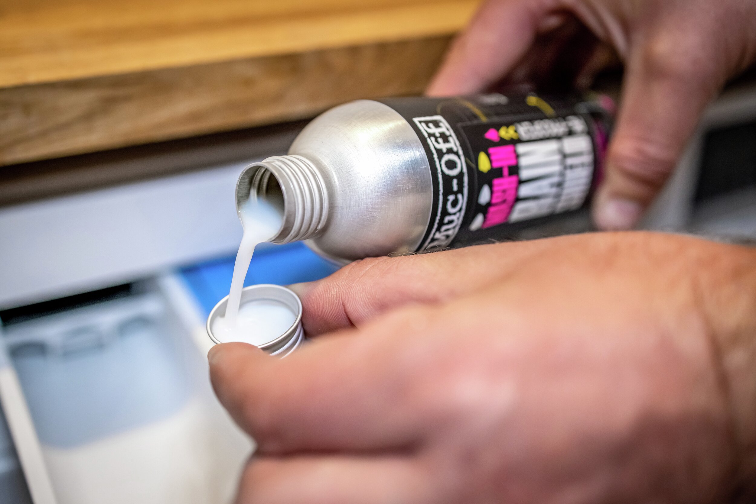 Schreddern Sie im Regen? Nehmen Sie unseren neuen Wash-In Rain Shield Re-Proofer. Dabei handelt es sich um eine einfach anzuwendende Wash-In-Behandlung, die bei allen wasserdichten und atmungsaktiven Stoffen die ursprüngliche Leistung wiederherstellt. Die hochmoderne DWR-Behandlung bildet eine robuste Barriere, die Ihre technische Kleidung wetterfest macht, ohne ihre Atmungsaktivität zu beeinträchtigen. Ausserdem schützt sie vor Schlamm und Flecken. Und das Beste daran? Es ist sicher für die Umwelt, da es auf Wasserbasis hergestellt ist und keine PFCs enthält! Unsere hochmoderne Formel bietet innerhalb von 24 Stunden nach der Behandlung einen unübertroffenen Schutz. Nach dem Auftragen perlt das Wasser ab, so dass Sie auch unter den härtesten Bedingungen geschützt sind und losradeln können.