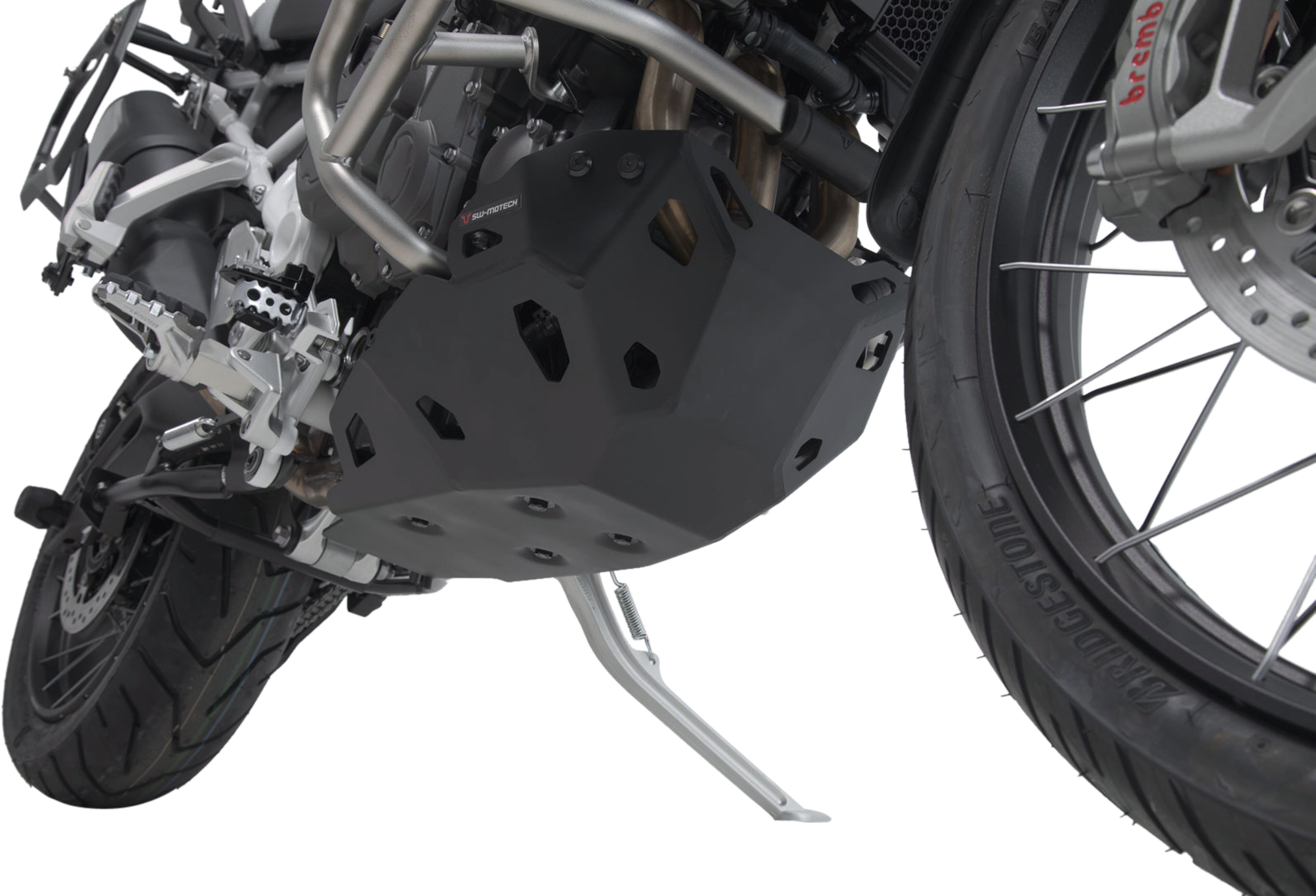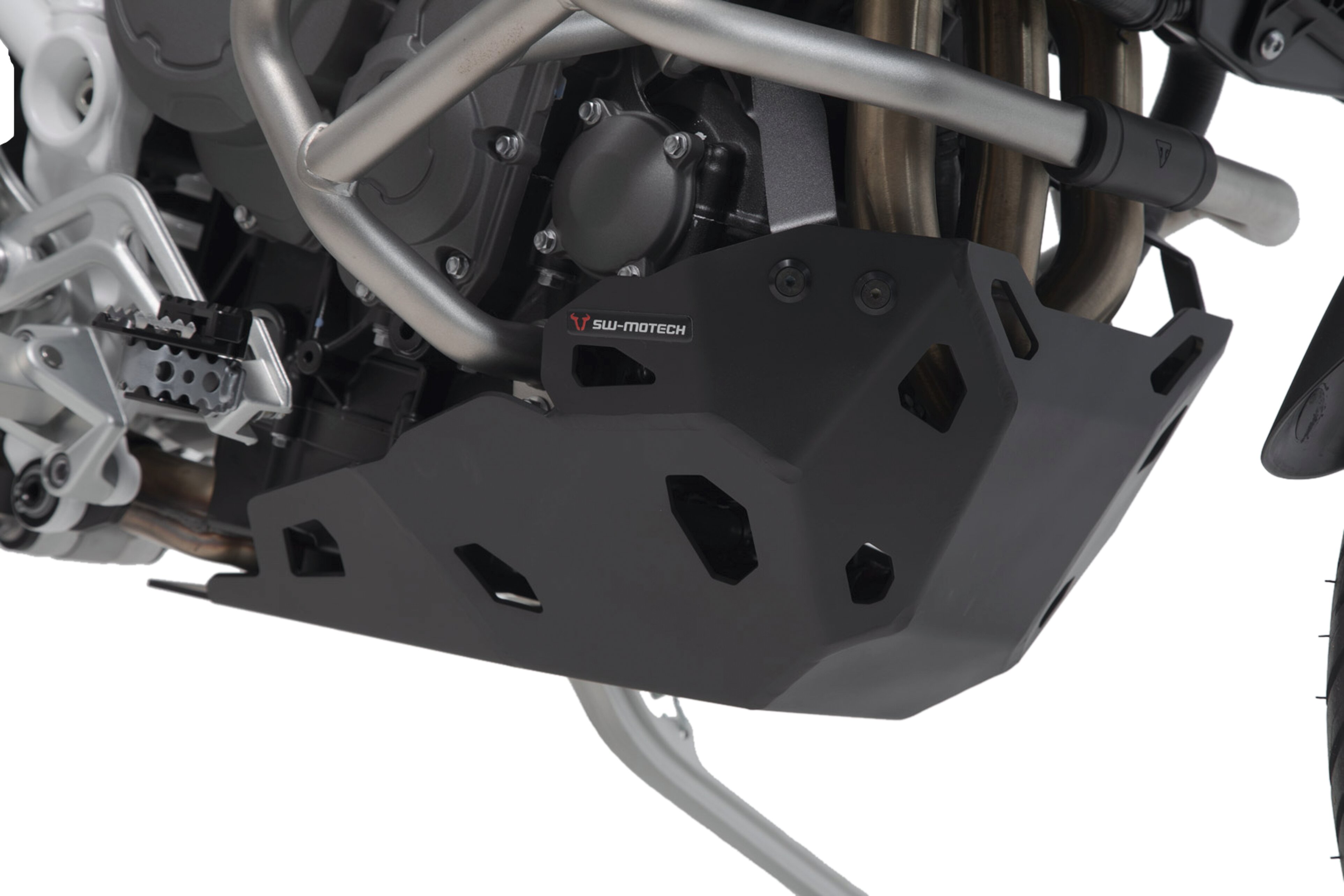 Zusätzlicher Schutz des Motors vor Steinschlag und bei Bodenkontakt: Der aus hochwertiger Aluminium-Legierung gefertigte Motorschutz zeigt abseits der Straße sein ganzes Können, gibt aber auch Straßenmotorrädern ein Mehr an Sicherheit und einen individuellen Look. Hochmoderne Fertigungsverfahren geben den modellspezifisch gefertigten Schutzteilen eine sichere Passform. Die Befestigung an Rahmen-Montagepunkten verleiht zusätzliche Stabilität und erlaubt eine einfache Montage.