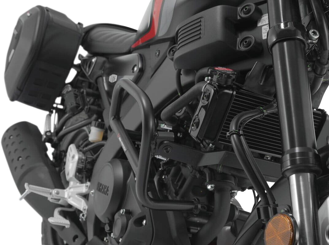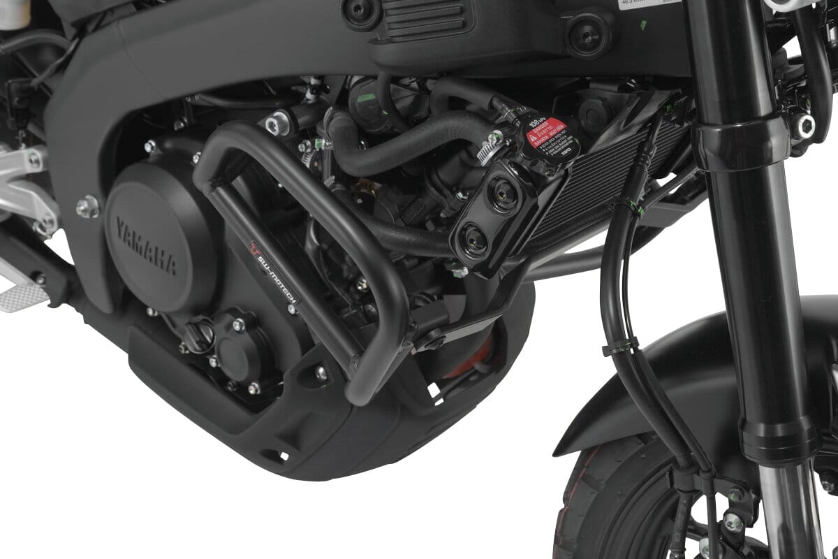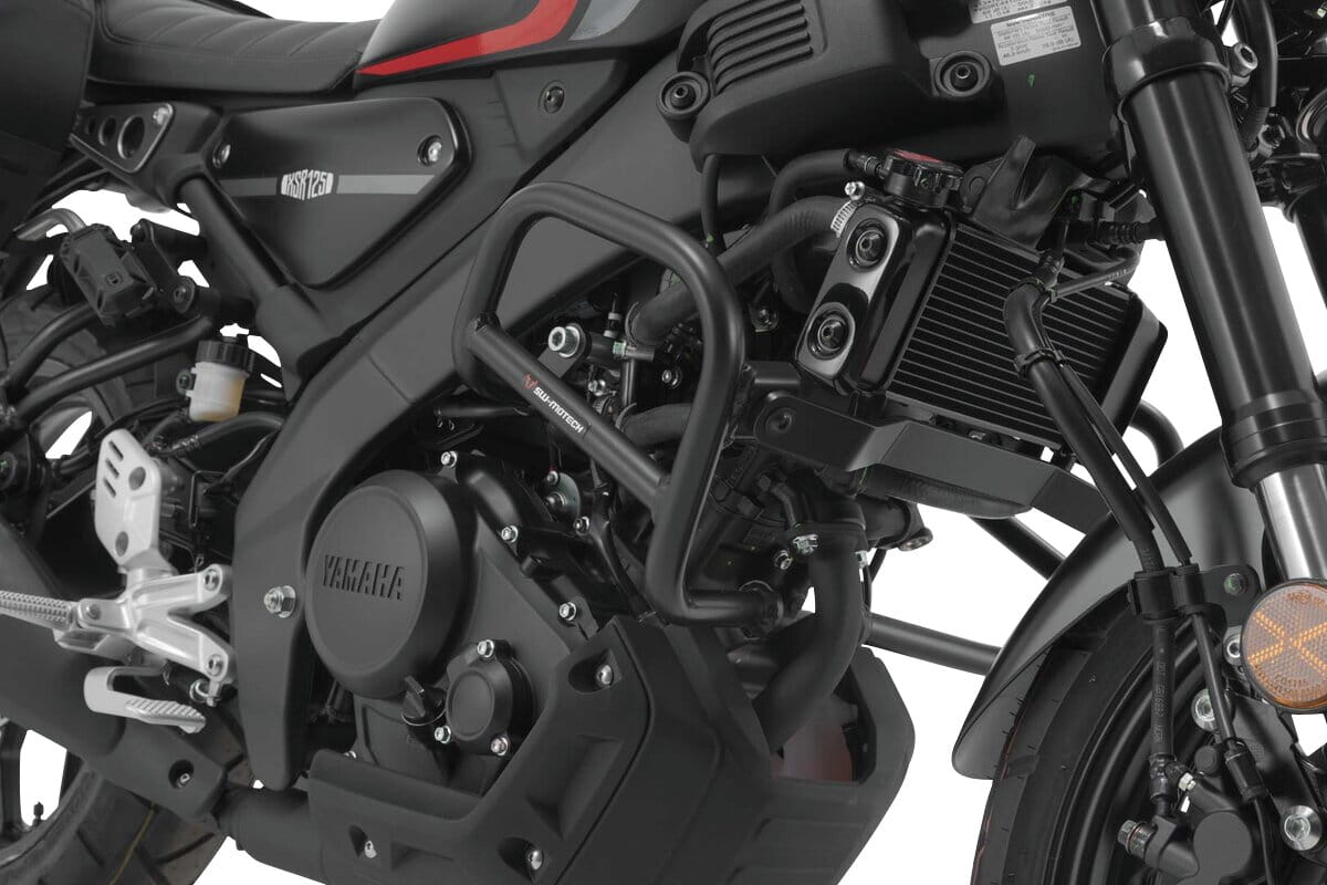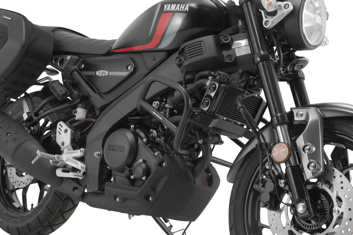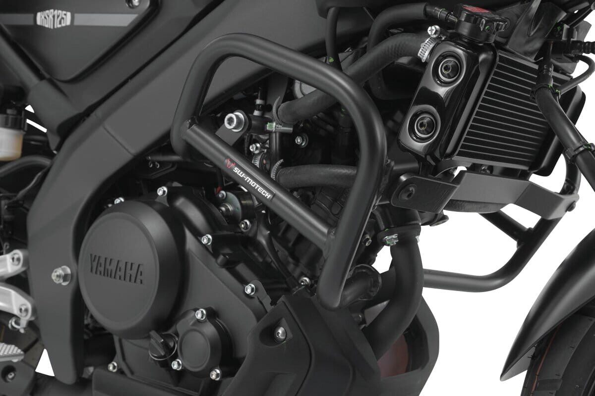 Passend für die Yamaha MT-125 und XSR125 werden die Sturzbügel aus robustem 27 mm starkem Stahlrohr mit witterungs- und korrosionsbeständiger Pulverbeschichtung in Schwarz angeboten. Die Oberflächenveredelung erfolgt in einer hochmodernen Anlage im SW-MOTECH Werk im tschechischen Brünn.