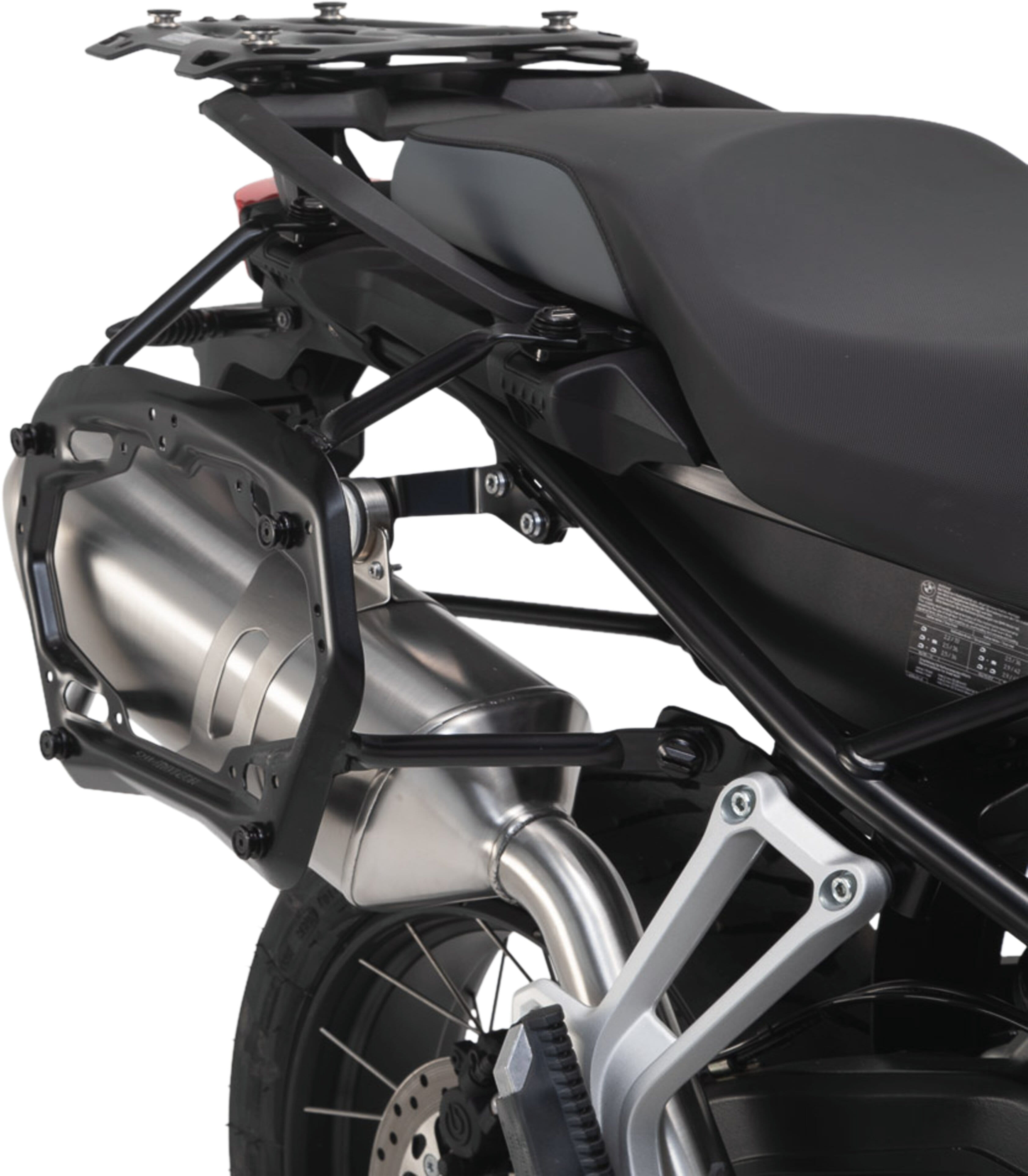 Der PRO Seitenträger gibt Seitenkoffern sowie der SysBag WP L sicheren Halt - die passenden Adapterkits sind separat erhältlich. Die zahlreichen Funktionsbohrungen des PRO Seitenträgers erlauben die Befestigung von anderem Zubehör.