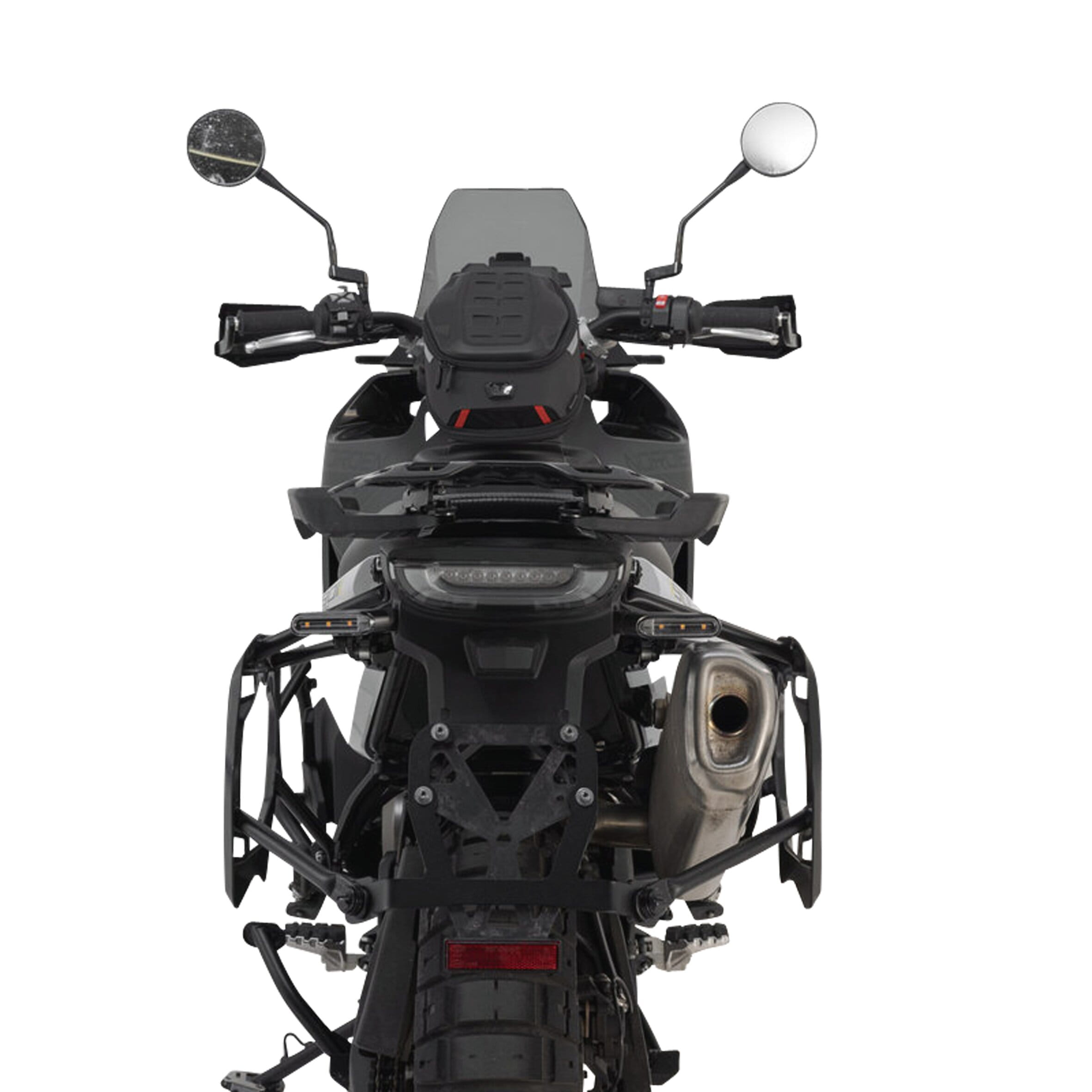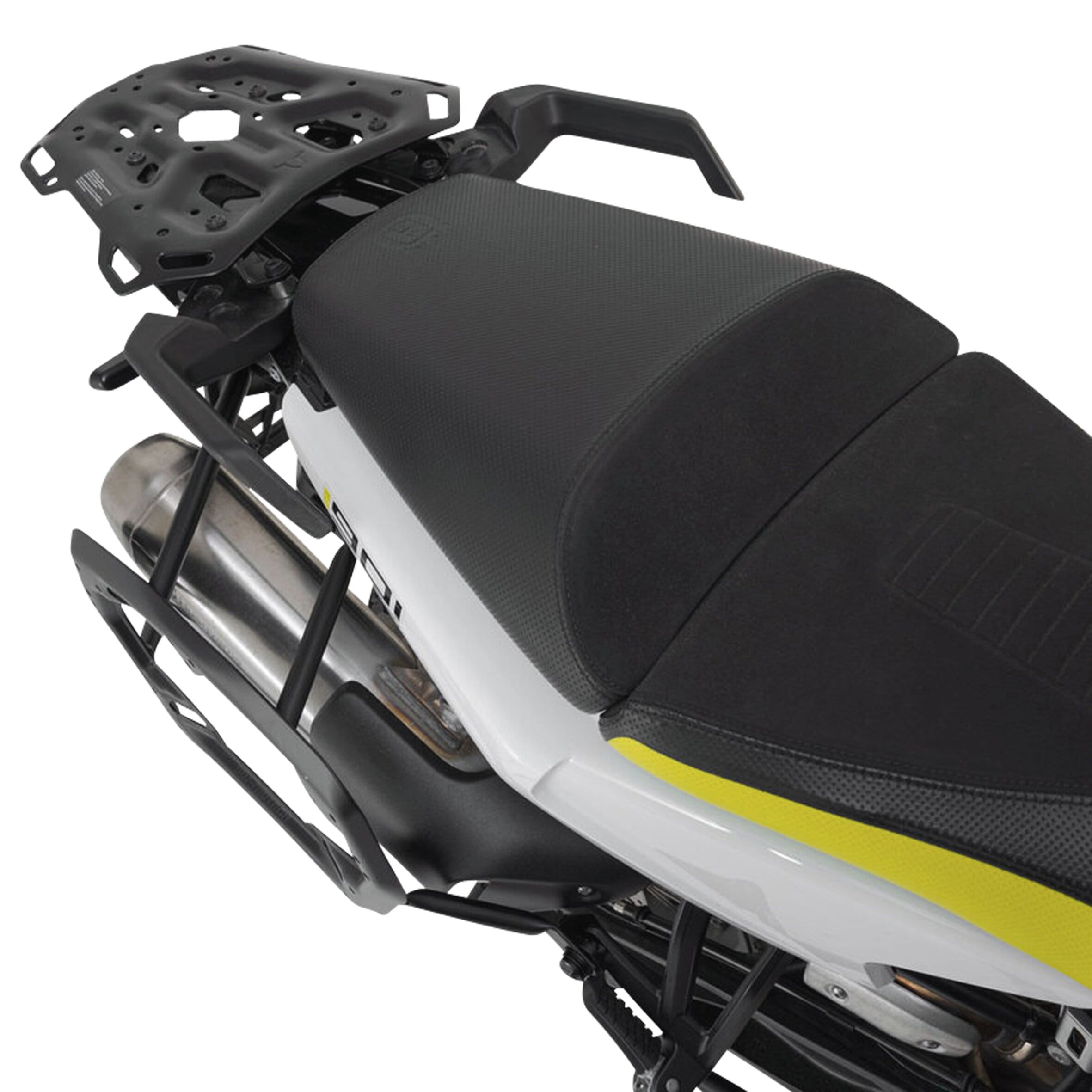 Wir haben diese PRO Seitenträger speziell auf das Heck der Husqvarna Norden 901 abgestimmt und so nah wie möglich an das Fahrzeug konstruiert. Die Anbaubreite ohne Koffer liegt bei 590 mm.