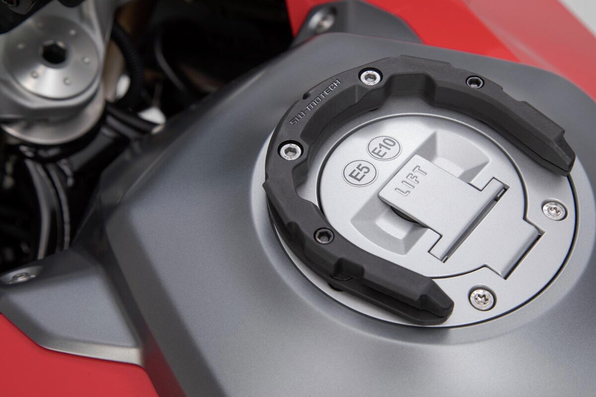 Der patentierte PRO Tankring wird auf den Tankeinfüllstutzen des Motorradmodelles abgestimmt. So kann die bestmögliche Positionierung auf dem Tank gewährleistet werden.